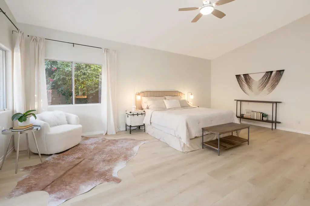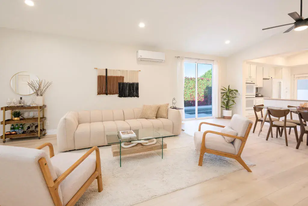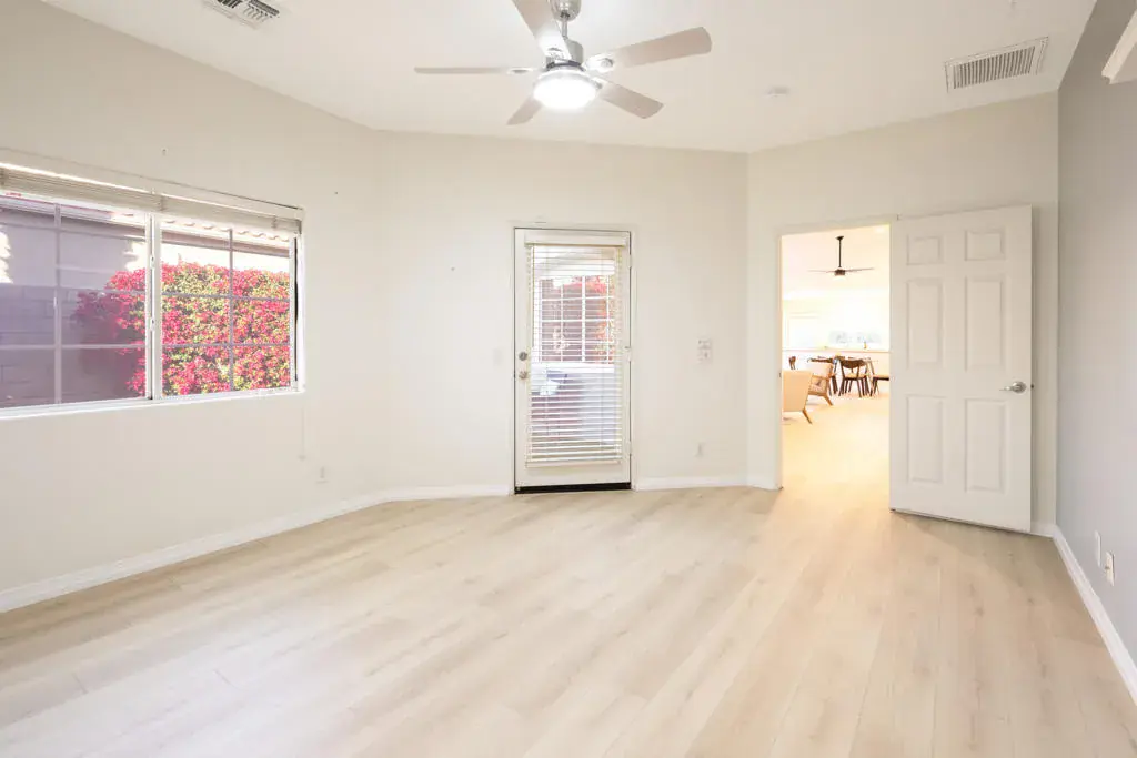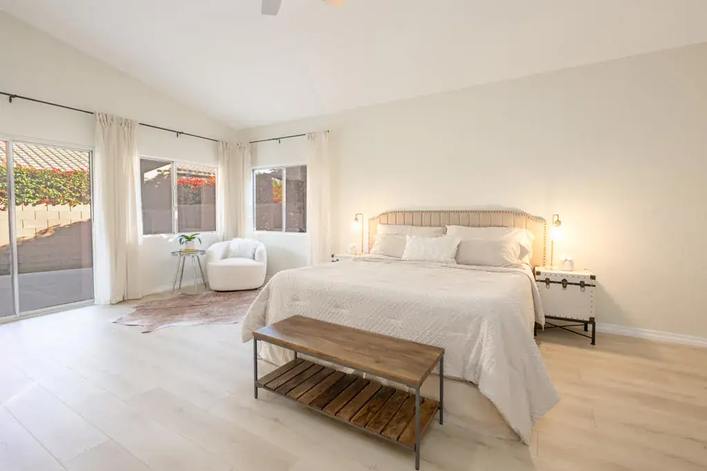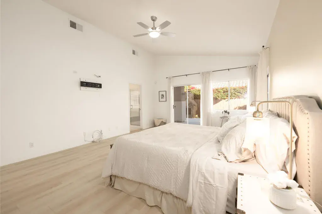 Come live the good life in this stunning country club home in the highly sought-after golf community of Indian Springs, a secure gated neighborhood centrally located just steps from the Big Rock Pub, a short walk to La Quinta High School, and a few minutes from Old Town La Quinta, PGA West, Palm Desert, and more! This beautiful home boasts a large wrap-around lot with breathtaking golf course views down the 8th hole, a private pebble-tek pool & spa , and an outdoor stone fireplace for relaxing under the stars. Step into the spacious gated courtyard with mature palm trees and a lush wall of bougainvilleas. Bring out the lawn games and enjoy newly installed synthetic turf – creating an inviting atmosphere for pets or children. Inside, this bright and open Venice floorplan features beautiful new seamless flooring and an upgraded sliding glass door that floods the home with natural light. The centrally located kitchen is ideal for hosting gatherings, whether inside or out on TWO covered patios. The oversized primary suite is a true retreat, offering ample space for a workout area or home office, plus direct access to the pool and spa. Two additional bedrooms and upgraded bathrooms provide plenty of room for guests or family. One bedroom even functions as a separate casita with a private courtyard entrance – perfect for a guest suite, home office, or studio. Rent includes HOA fee providing access to community fitness center/pool/spa, with cable TV & Internet in the house. Available unfurnished for longterm/annual lease starting April 1st. Pictures were taken when house was staged before current tenant.