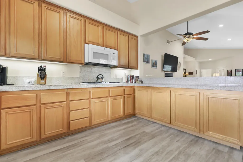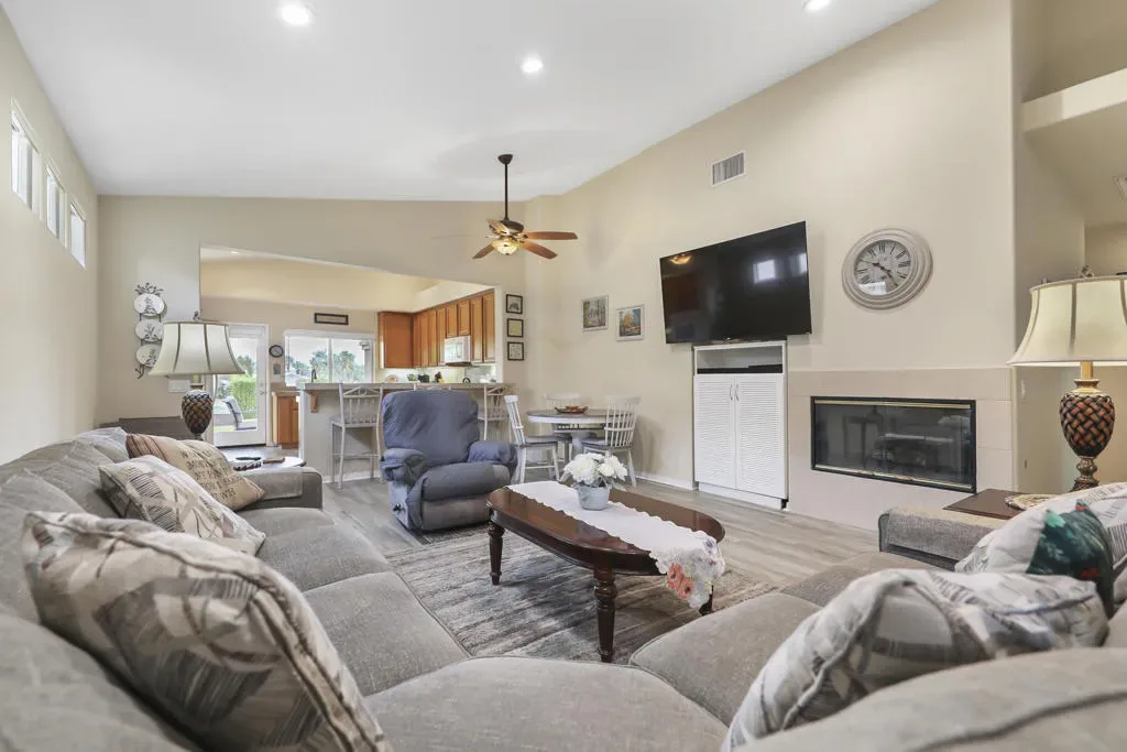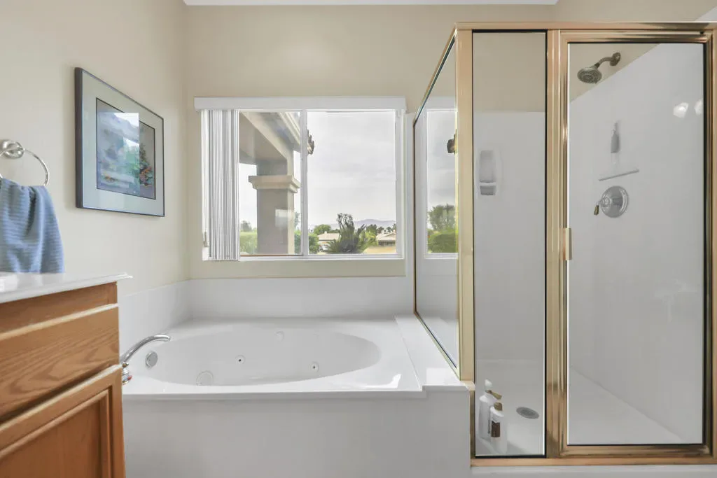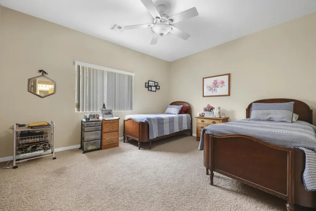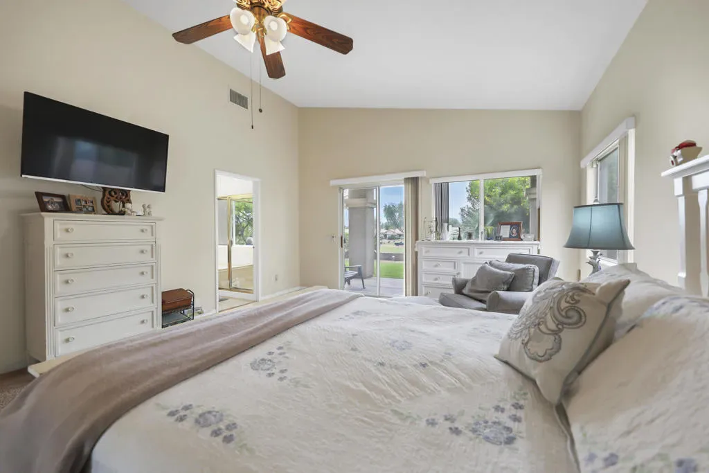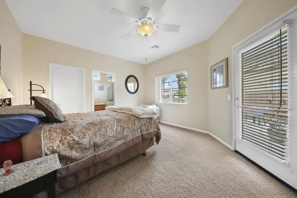Discover this impeccably maintained, move-in-ready Venice model in the desirable Indian Springs community. Offering 1,898 sq. ft. of comfortable living space, this popular floor plan features 3 spacious bedrooms and 3 bathrooms, including a private attached casita with its own entrance, courtyard views, and ensuite bath–perfect for guests, a home office, or a quiet retreat.Enjoy stunning panoramic mountain and sunset views from your north-facing backyard, ideally positioned along the 4th fairway of the Big Rock at Indian Springs Golf Course. The outdoor living space includes two covered patios and an extended concrete patio area, creating the perfect setting for relaxing or entertaining against a breathtaking desert backdrop.Inside, the home is beautifully maintained and decorated to reflect a relaxed desert lifestyle. The kitchen overlooks the golf course and mountain vistas, making everyday living feel like a getaway.Indian Springs Country Club offers exceptional amenities, including the popular Big Rock Pub & Golf Course @ Indian Springs–known for great food, live music, and quality golf at reasonable rates. The low HOA fee covers front yard landscaping, cable TV/internet, 24/7 staffed entry, and access to two Residents Clubs featuring heated pools, hot tubs, and fitness centers. Rentals must be 30 days or longer; short-term vacation rentals are not permitted.Light, bright, and airy–this is a fantastic opportunity to own a golf course home in the heart of the desert. Don’t miss it!