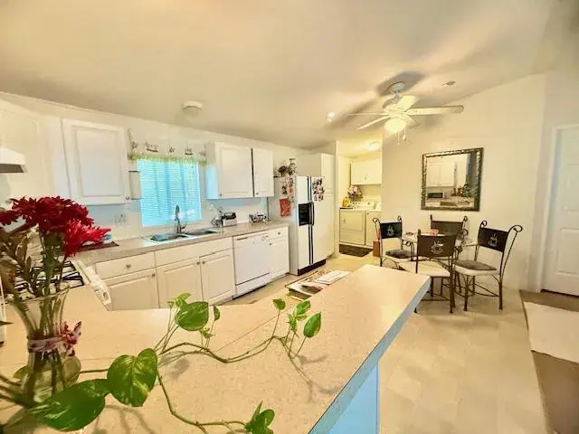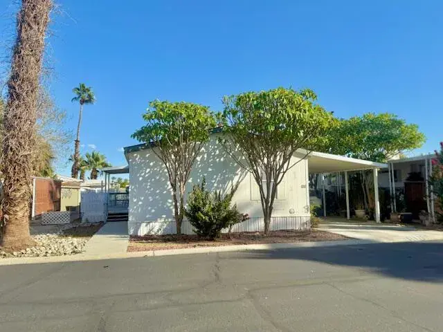 Beautiful home, great for full time or a part time desert oasis 55+ Palmdale Estates now on market, newer 2004 model 3 bedroom, 2 bath with vaulted cielings, patio area, shed, newer hvac, excellent condition and very clean. Come enjoy pool, spa, club house on site management, gated community. Adjacent to Indio Polo Grounds, near shopping restaurants, great view to pool and club house area. RV parking offered to the rear of the park. Space rent will be $750 for new owners, owner occupants only, must be park qualified.