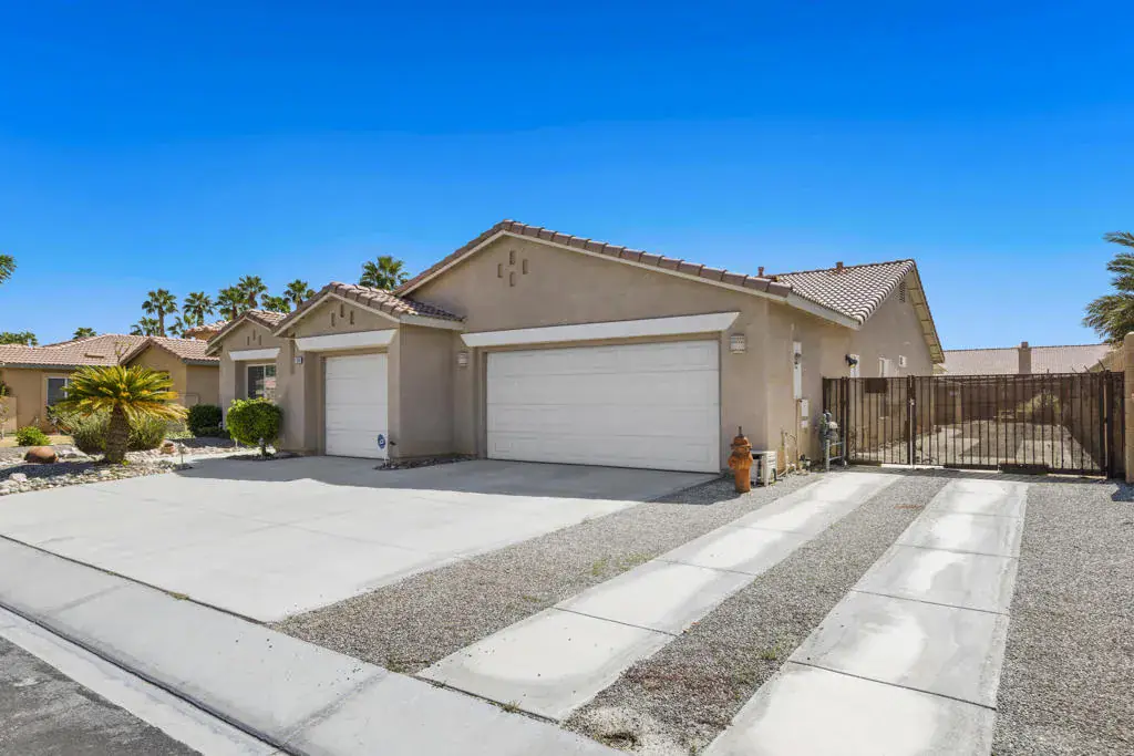 Your desert retreat awaits–complete with a sparkling pool, spa, and an expansive covered patio built for entertaining and relaxation. This single-level home sits on a deep lot and offers full RV parking with 30-amp electrical outlets, sewer hookups, and water connections. A private casita with its own entrance makes the perfect guest suite, home office, or income opportunity. Inside, soaring high ceilings and an open floor plan create a bright, inviting atmosphere that flows seamlessly outdoors. Whether hosting gatherings or enjoying quiet evenings, this home is designed for easy desert living. With LOW HOA, walking distance to Coachella festivals and activities, and all the upgrades you need for comfort and convenience, this property is an exceptional find–ideal as a personal getaway or a smart investment.