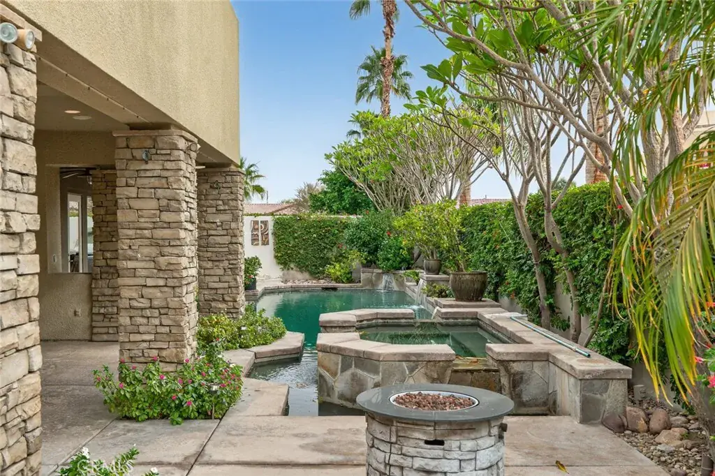 Attention Vacation Home Investors! The ultimate desert getaway plus high income producing property in the exclusive community of “The Montage at Santa Rosa.” Your opportunity to own an amazing vacation home that pays for itself and provides income. Over 3,700 square feet of living space includes a primary bedroom and spa quality bathroom retreat; four other bedrooms with three full baths, including a private casita. Resort style backyard boasts a huge pool with waterfalls, a spa, a built in bar b que station, firepit, outdoor fireplace, putting green, water features/ fountains, all on a large lot with over 13,000 square feet. The community embraces short term rentals to accommodate the many events and functions now happening in the Coachella Valley. Expansive three car garage with incredible storage cabinet space. The gated courtyard leading to the entry is very desirable for privacy. A 6th bedroom is possible enclosing the original office space. Stainless steel appliances, kitchen breakfast bar built into the island, open to the family room with built ins, hearth seating and fireplace. Recessed lighting, surround sound system throughout, ceiling fans, zone heating and cooling, too many amenities to list. Just minutes away from Coachella, Stagecoach and the Polo Grounds. Make an appointment to see it today!