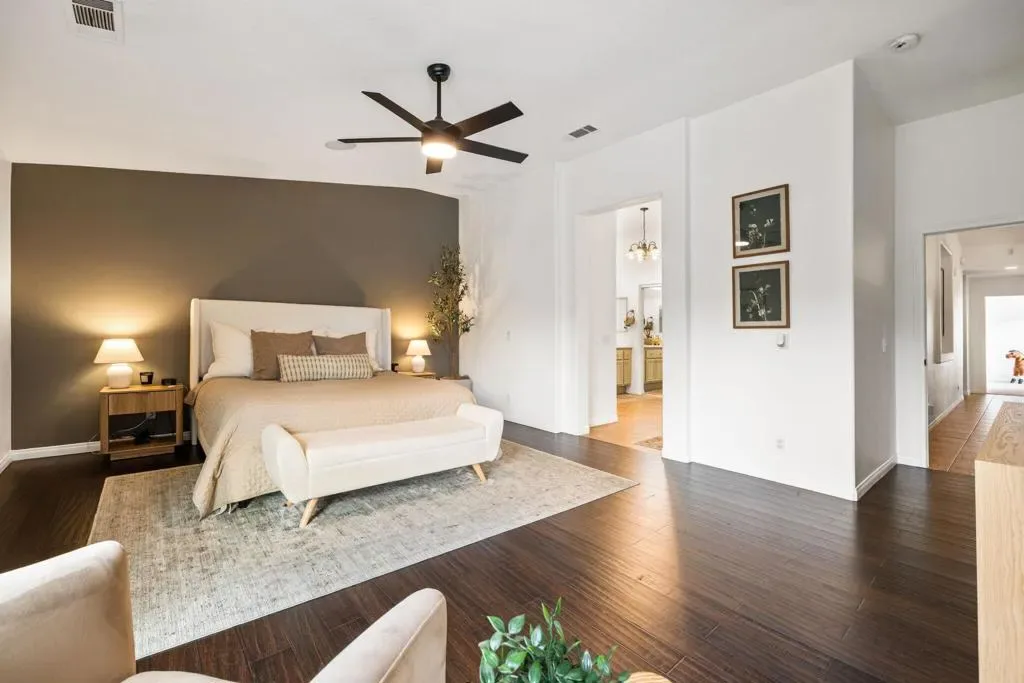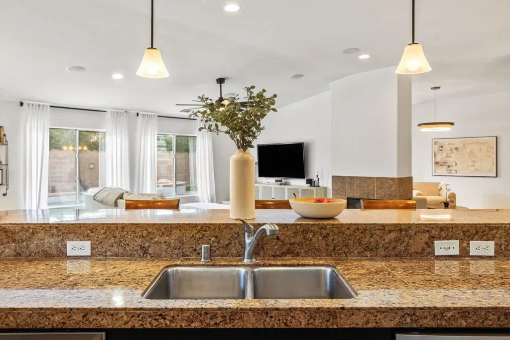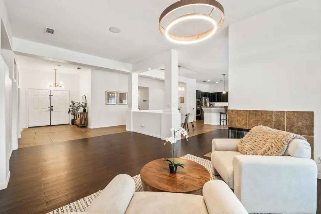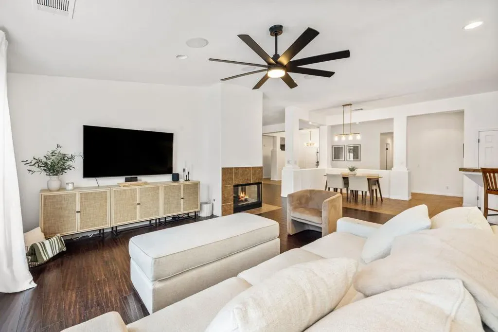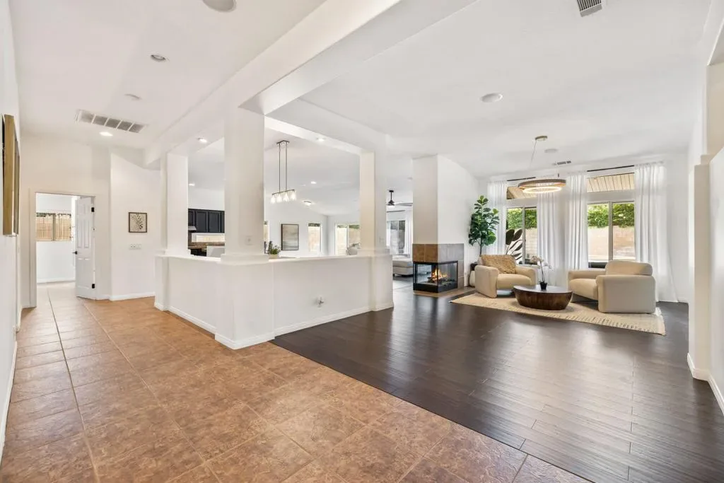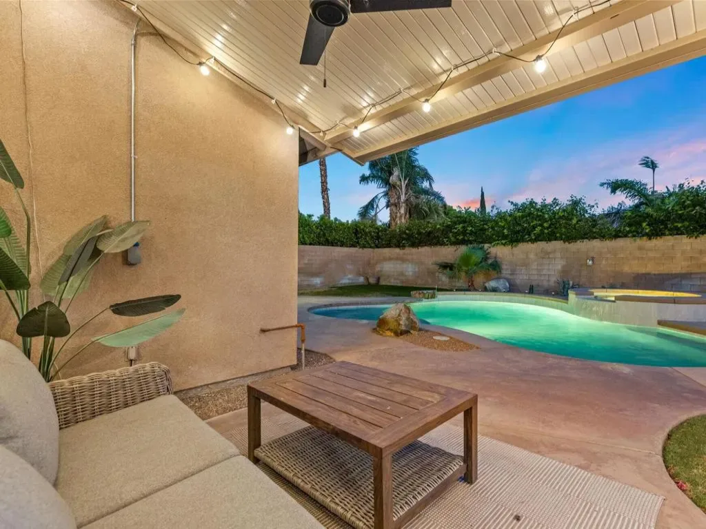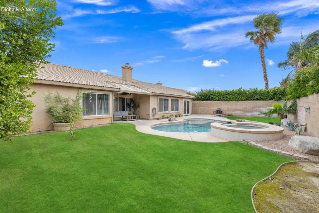 Spacious 4-bedroom, 3-bath pool home in Monticello II offering over 3,000 sq ft of single-level living–an exceptional size for the area. This well-designed home features a formal entry, expansive living and family rooms, a dining area, and generously sized bedrooms. A striking three-sided fireplace serves as a focal point in the main living space. The kitchen is equipped with granite countertops, stainless steel appliances, and the rare convenience of two dishwashers–ideal for entertaining or busy households. Recent updates include newer fixtures, freshly painted interior (2023), a newer microwave, and a new garage door with motor. An electric vehicle charging outlet in the garage adds modern convenience. Step outside to a private backyard featuring a pool and spa that have been recently resurfaced with pebble finish, along with updated waterline tile, and new cement coping. A newer pool heater enhances year-round enjoyment, while the Alumawood patio cover provides shaded outdoor living space. With low HOA dues and access to great schools, this home is centrally located near shopping, dining, and everyday conveniences–offering comfort, functionality, and value.