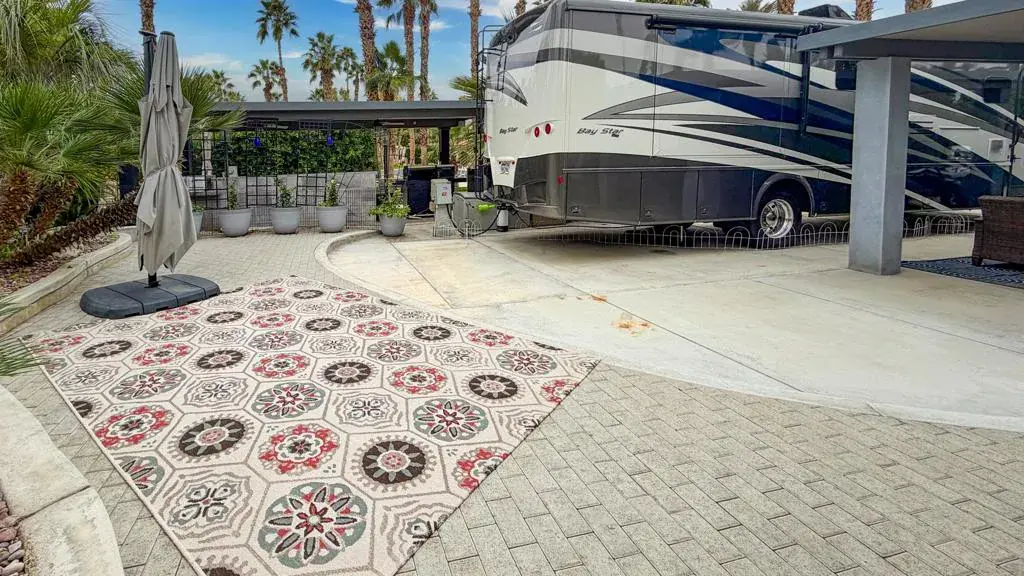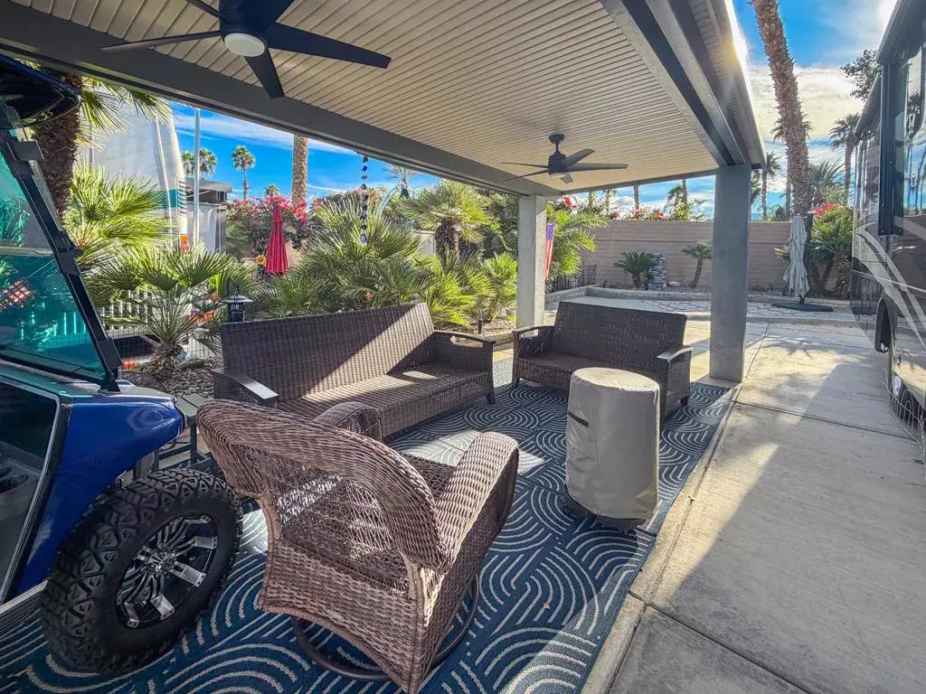Step into resort living with this inviting pergola lot at Outdoor Resort Indio–a great opportunity to own in one of the desert’s premier Class A motorcoach communities. This property offers a comfortable and private outdoor lifestyle with mature landscaping and a raised back patio that expands your living space.The solid-roof pergola provides shade and comfort, enhanced by two ceiling fans for warm afternoons and outdoor seating that makes relaxing with friends easy. A charming water feature at the rear of the lot adds a peaceful ambiance, creating a soothing backdrop for morning coffee or sunset gatherings. Just a short walk from the nearby satellite pool, hot tub, sauna, and laundry, this location blends convenience with resort-style comfort.Whether you’re looking for a seasonal getaway or your place in the ORI community, this lot delivers excellent value and lifestyle appeal. Outdoor Resort Indio is a class A only RV resort.
