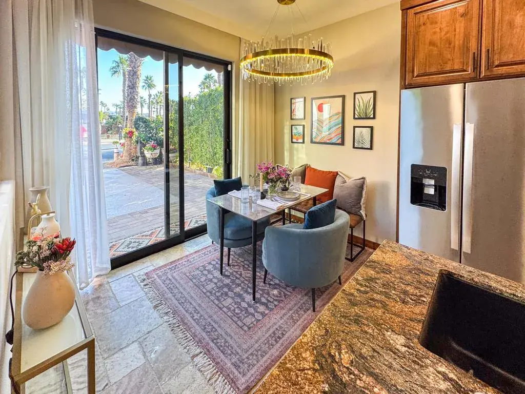 Discover unparalleled luxury and comfort at this exceptional RV lot at Outdoor Resort Indio, where quiet privacy meets sophisticated design. Nestled next to a pet area for added convenience, this lot features a sparkling epoxy RV pad, pavers, and potted flowers with drip irrigation. At its heart is a stylish, newly built (2023) 472 sq. ft. casita that exudes modern elegance and thoughtful craftsmanship. With extending awnings for additional outdoor living space, this retreat is perfect for entertaining or relaxing in complete privacy.Inside the casita, you’ll find a spacious living and dining area, a large kitchen with a central island, and custom leather-finished granite countertops–a true must-see. Fully furnished and adorned with curated wall art, the casita includes a sleeper couch, a full-size fridge, recessed lighting, a chandelier, and sconces for a warm ambiance. The luxurious full-size bathroom boasts a large shower and ample storage, while the laundry and wardrobe room add practicality. With tile flooring, new paint, modern lighting, every detail has been designed for comfort. Extend your stay at ORI with the built in AC and heat system. This one-owner casita is move-in ready, complete with all appliances and a TV, offering the perfect blend of style, privacy, and luxury RV living. Outdoor Resort Indio is a class A only RV resort.