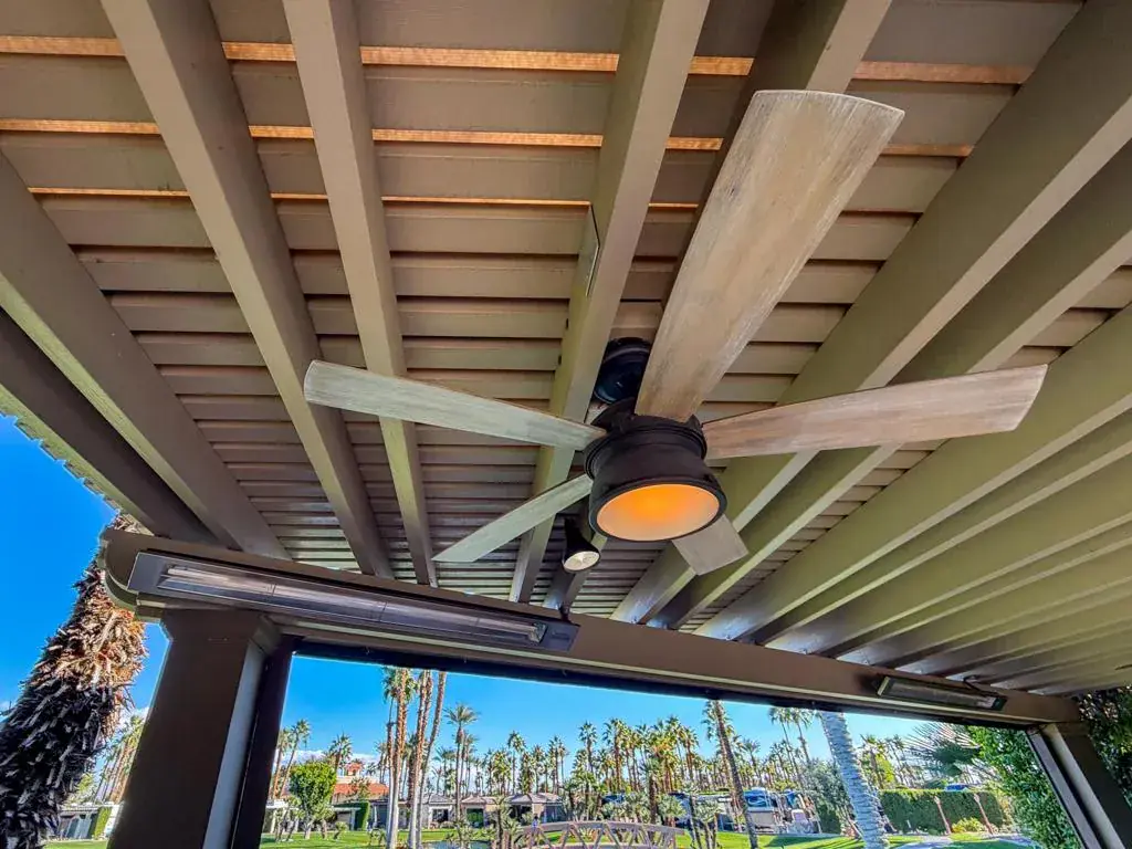This private luxury RV lot at Outdoor Resort Indio offers panoramic water, golf course, and mountain views paired with premium upgrades and exceptional outdoor living. Mature privacy hedges frame a high-quality custom epoxy decorative RV pad and an extended paver rear patio, creating generous space to relax while enjoying wide views of the lake, waterfall, bridge, and golf course.A large L-shaped Alumawood pergola defines the living area and includes three ceiling fans, three ceiling heaters, misters, and a rear electric screen for all-day comfort. The custom outdoor kitchen features stone countertops, a built-in BBQ island, oven, dishwasher, wine cooler, under-counter refrigerator, two-burner cooktop, large sink, stainless storage drawers, built-in cabinetry, and a matching rolling cabinet–ideal for entertaining.An entertainment center with fireplace sits beneath the pergola, perfectly positioned with the lake and waterfall centered behind the lot. Additional highlights include a 200-amp electrical upgrade, updated water line, and ample built-in storage. This RV lot delivers privacy, striking views, and upscale finishes in one of Outdoor Resort Indio’s most desirable locations.Outdoor Resort Indio is a Class A RV only resort.