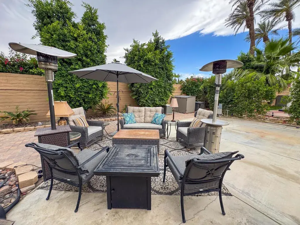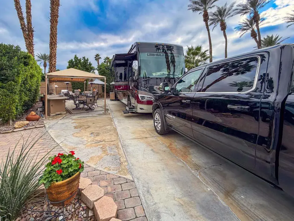 Outdoor Resort Indio is a class A only RV resort and this is an RV lot.Experience your own private oasis with this beautifully landscaped luxury RV lot, featuring an expansive, wider back area that offers exceptional privacy and tranquility–perfect for relaxing or entertaining in a serene garden setting. Thoughtfully designed with comfort and convenience in mind, this north-facing lot provides ample shade and a peaceful ambiance while being just steps away from the satellite pool, laundry, and resort amenities.The well-maintained outdoor kitchen is equipped with everything you need, including hot water, an oven, two refrigerators, a sink, and plenty of storage with three rolling cabinets and deck boxes. The spacious living area is enhanced by pavers, lush landscaping, two large umbrellas, a cooling fan, and two mushroom heaters, creating the perfect environment for your enjoyment. This pet-friendly retreat is only 90 steps to the grass area, making it an ideal haven for you and your furry companions. Whether you’re unwinding in the shade or hosting friends under the sun, this exceptional lot offers the ultimate blend of luxury and convenience.