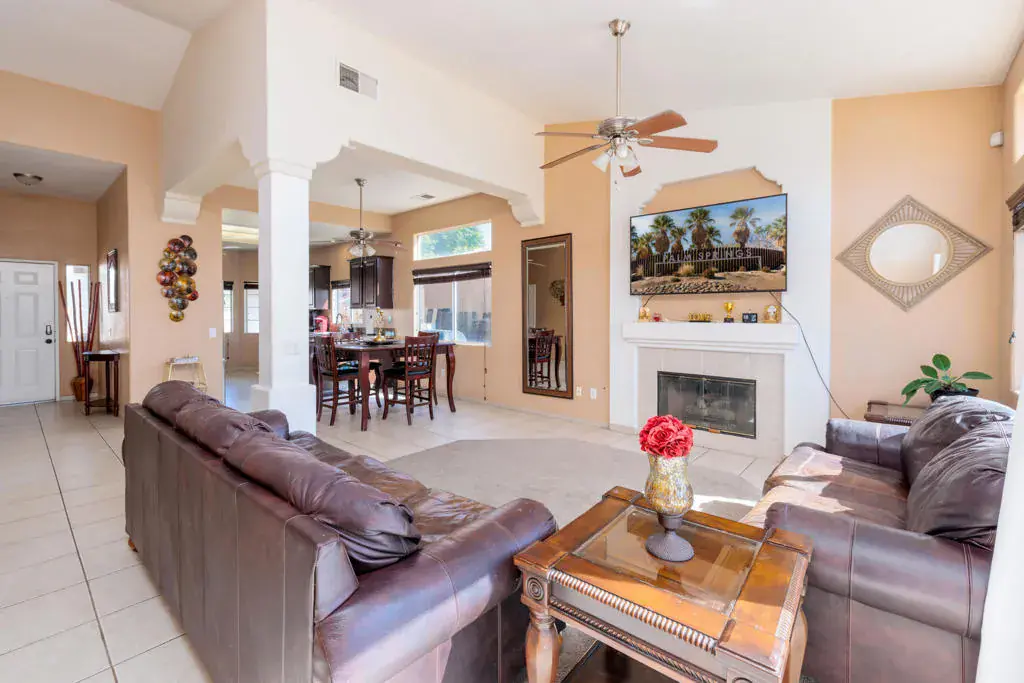 *APPRAISED for 515K* Appraised November, 2025!Step into warmth and comfort the moment you walk through the door of this charming 3-bedroom, 2-bath pool home in the heart of Indio. Mornings begin with coffee on the front porch as the neighborhood comes to life, and evenings unfold as the sun dances across your sparkling pool and spa. The freshly painted exterior, mature landscaping, and cozy curb appeal make this home instantly inviting. Inside, an open layout connects gathering spaces filled with natural light, creating a sense of ease and belonging. With RV access, a spacious two-car garage, and no HOA, you’ll have the freedom to live the desert lifestyle your way. North-facing for ideal summer comfort and located in a well-established neighborhood near schools, parks, and recreation — this home perfectly blends charm, function, and everyday beauty.