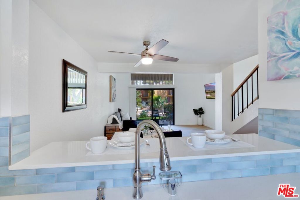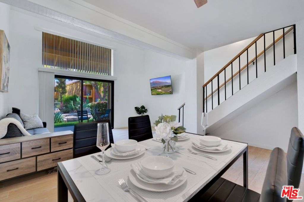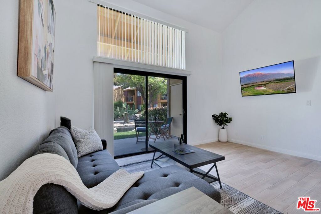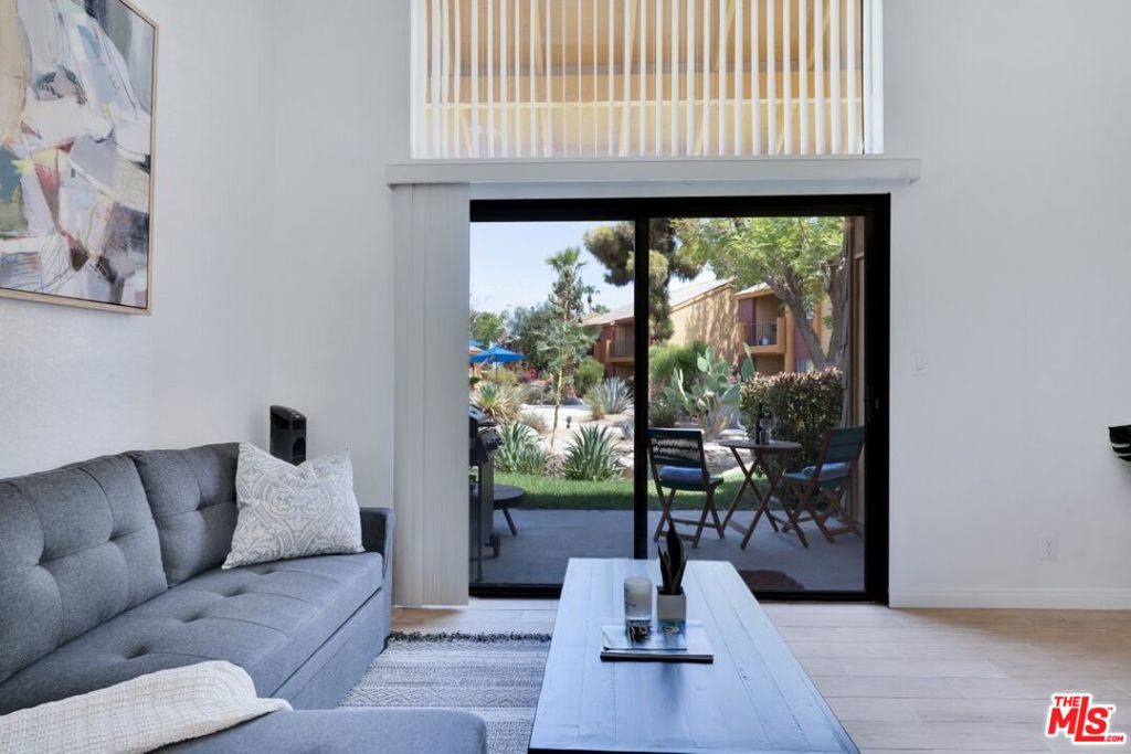 Welcome to effortless desert living at Quail Lakes Racquet Club, a gated Indio community where style, comfort, and convenience come together. This furnished loft style condo makes an immediate impression with soaring vaulted ceilings, warm plank tile flooring, and light that pours in from every angle. The modern kitchen is outfitted with quartz countertops, a gas range, dishwasher, microwave, and refrigerator. The main level flows naturally from the living area to a covered patio overlooking a tranquil creek and sparkling pool and spa, creating a seamless indoor outdoor experience. A powder room and outdoor storage closet with washer and dryer round out the ground floor. Upstairs, the spacious loft serves as a private retreat complete with a full bathroom, generous closet space, and additional storage. Resort style amenities include a pool, spa, gazebo, two tennis courts, and scenic walking paths. HOA dues cover water, gas, trash, exterior maintenance, landscaping, and roof, keeping ownership simple and low maintenance. Includes a single car garage with opener and keypad access, a newer A/C and heating system, and an upgraded sliding screen door. Situated minutes from the Empire Polo Grounds, home to world famous Coachella and Stagecoach festivals and close to golf, dining, and shopping at Indio Grand Marketplace and Old Town La Quinta, this property delivers on every front. Whether you’re looking for a primary residence, a desert escape, or an income producing rental (short term rentals allowed with HOA approval), the opportunity here is hard to beat.