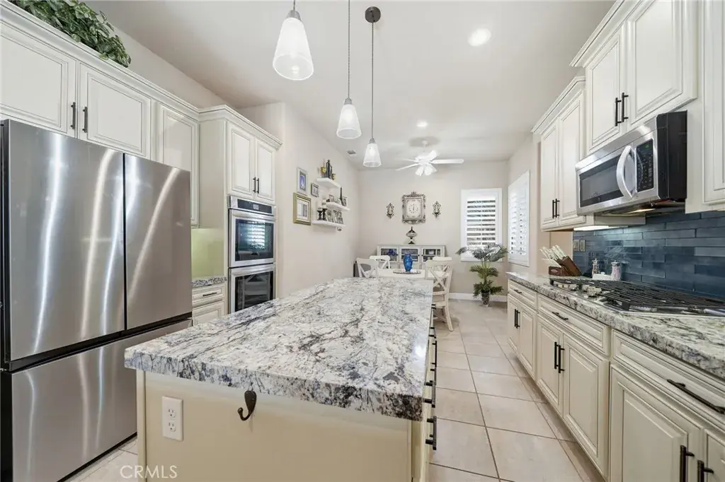 ***DON’T MISS THIS STUNNING CASTELLANO-MODEL POOL HOME—OVER $211,000 IN RECENT UPGRADES—IN THE HIGHLY DESIRABLE SUN CITY SHADOW HILLS COMMUNITY! Premium Quality, Absolutely Immaculate, and Truly Move-In Ready!***This beautifully maintained 2,230 sq. ft. single-story residence offers 2 bedrooms, 2.5 baths, and a spacious bonus office/den, all wrapped in an inviting open-concept design with travertine flooring and plantation shutters throughout. The brand-new gourmet kitchen is a chef’s delight, showcasing premium granite countertops, an enlarged center island, a 7-person breakfast bar, stainless steel appliances, five-burner gas cooktop, double ovens, under-cabinet lighting, and soft-close pull-out cabinetry. A generous dining area complements the kitchen, while the formal dining room—currently used as a sewing room—features a unique built-in shelf encircling the space. The expansive great room opens to your private desert oasis: a completely redesigned backyard with a new saltwater pool and spa, travertine decking (cooler underfoot in hot temps), fresh landscaping, a covered dining area, and an extended covered patio with a retractable movie screen—perfect for both relaxation and entertaining. The luxurious primary suite offers a large walk-in closet, dual vanities, a Roman soaking tub, and an oversized walk-in shower. The privately located secondary bedroom—with an adjacent full bath—is ideal for guests or multi-generational living. A stylish powder room is conveniently positioned off the main living area as well as a laundry room with sink and bonus cabinetry. The 2-car garage enjoys an additional 3rd golf-cart garage…the garage features insulated roll-up doors, overhead storage and a mini-split heating and air-conditioning unit (to moderate temperatures in summer and winter). Enjoy resort-style living in Sun City Shadow Hills, an active adult community featuring two golf courses with lakes, multiple clubhouses, fitness centers, indoor and outdoor pools/spas, pickleball, tennis, bocce, shuffleboard, table tennis, billiards, dining options, and countless clubs and activities. HOA dues even include internet! There is way too much to list everything that this property has to offer in this description! With exceptional upgrades and a brand-new pool and spa, this home truly defines desert living at its finest.