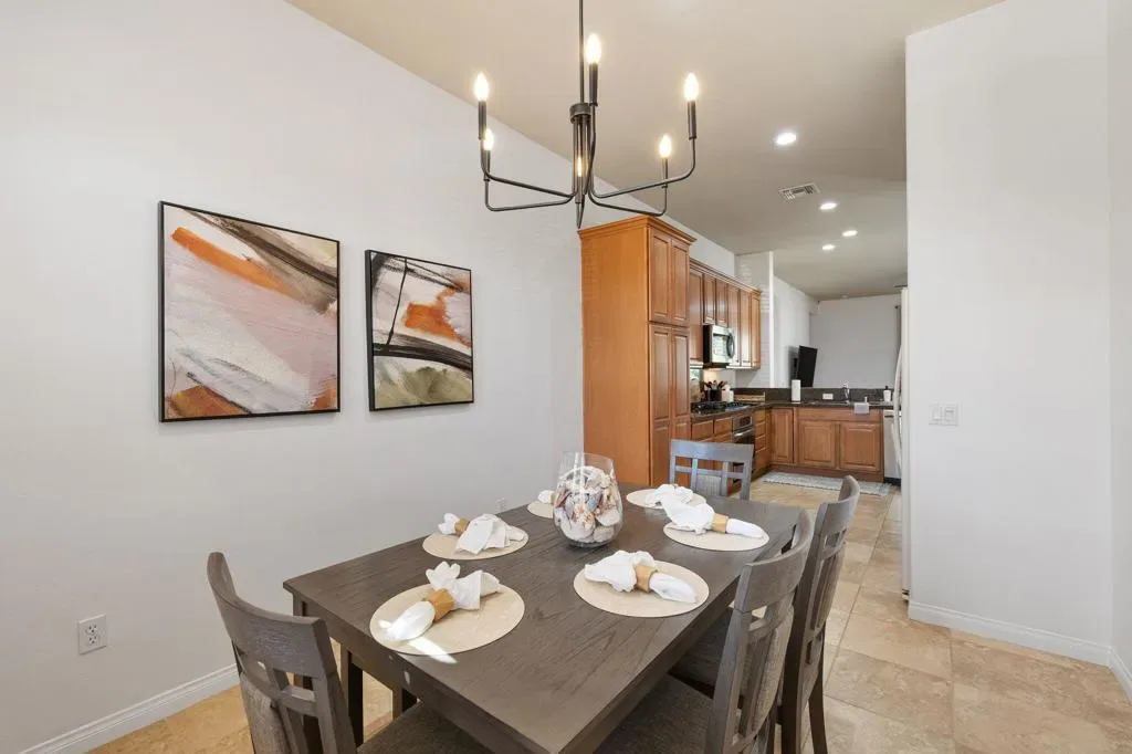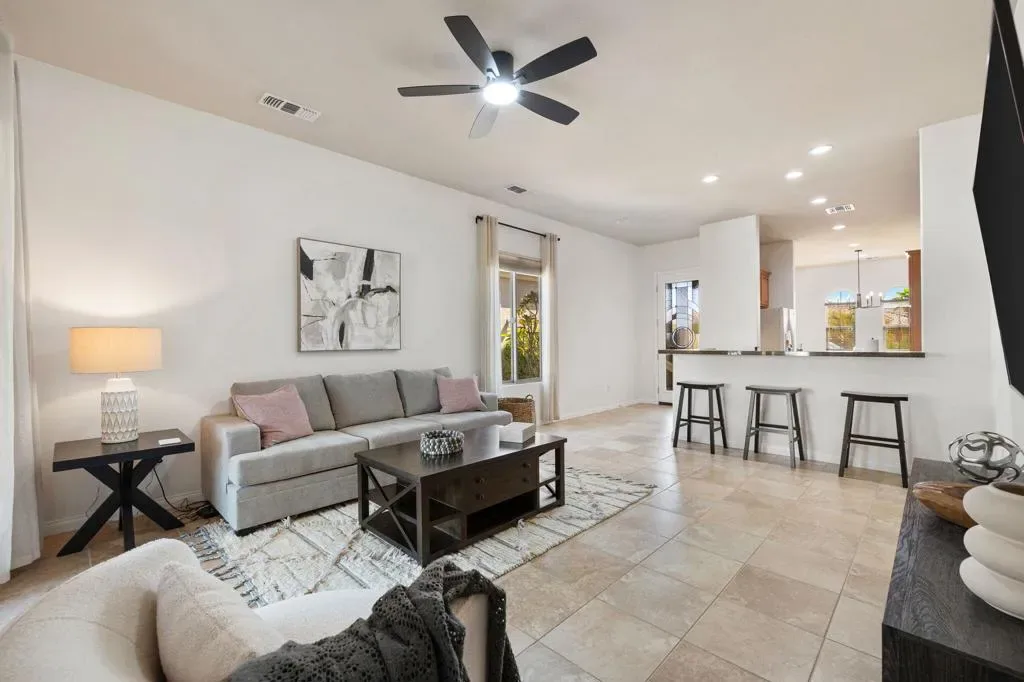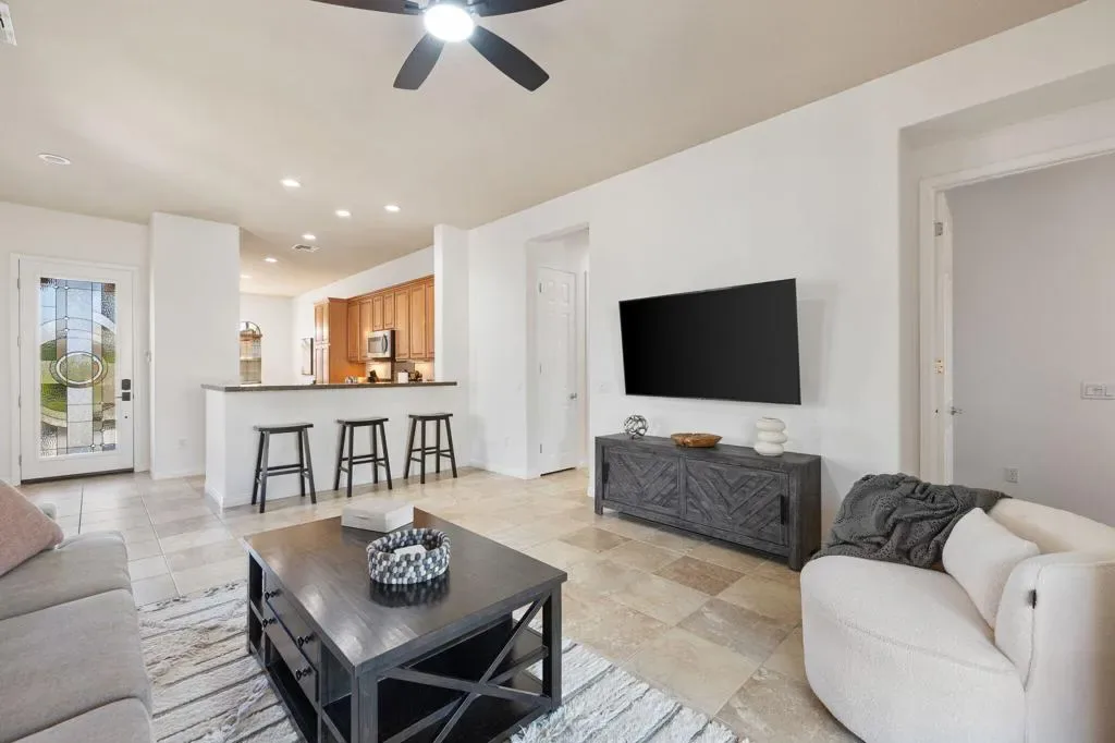 Available APRIL 15,2026 for 30 days or longer Seasonal rate is $5200.00 Charming Montoya Model in 55+ Community – Move-In Ready!Discover comfort, style, and functionality in this beautifully maintained Montoya model, nestled on a quiet street in a desirable 55+ community. Offering 1,432 sq ft of thoughtfully designed living space, this home features 2 bedrooms plus a versatile den, currently set up with a queen bed to easily accommodate guests.From the moment you arrive, the exceptional curb appeal stands out with elegant hip roof lines, arched windows, mature landscaping, and a decorative cut-glass entry door that welcomes you in.Inside, you’ll find freshly painted interiors, stylish tile flooring, and upgraded ceiling fans and light fixtures that create a bright, cohesive ambiance throughout. The open-concept floor plan seamlessly connects the spacious great room to the eat-in kitchen, perfect for both entertaining and everyday living.The kitchen is a chef’s dream, boasting:Granite countertopsQuality cabinetry with lower pull-out shelvesStainless steel appliancesA sunny dining nookStool-height breakfast bar flowing into the living spaceAdditional highlights:New furnitureFresh paintNew beddingMove-in ready conditionAll that’s missing is you! Pack your bags and book your showing today — this gem won’t last long!