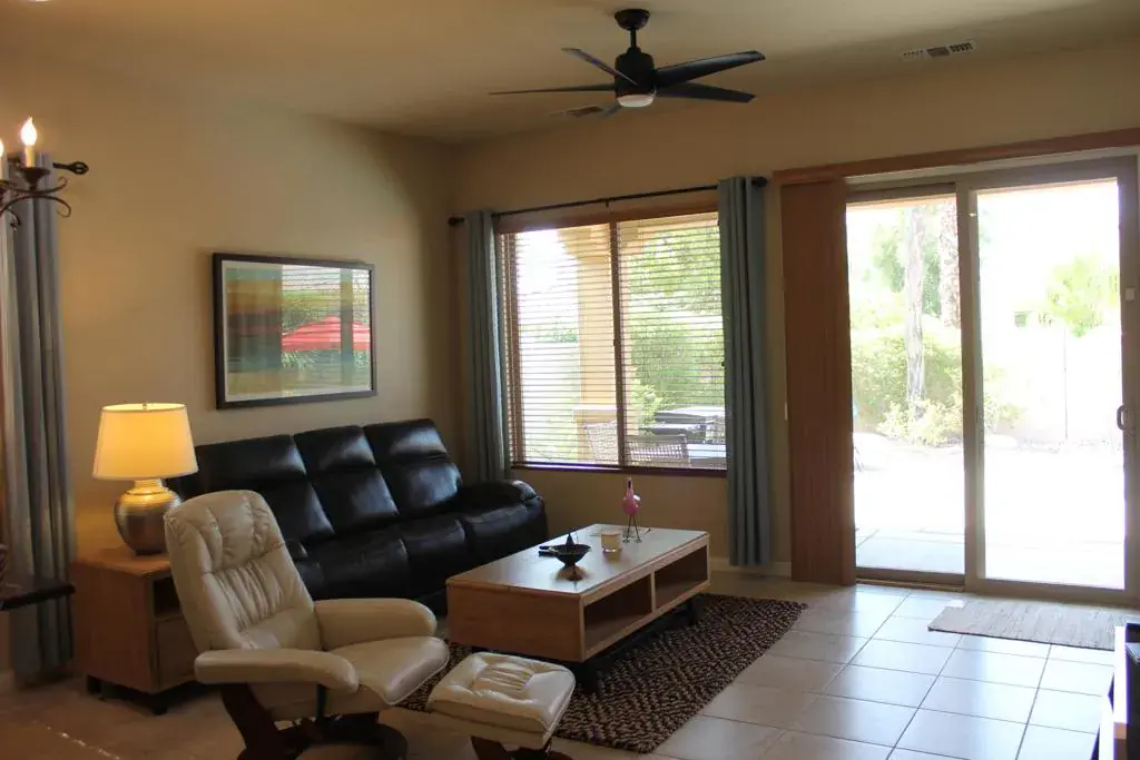 2027 All Dates Available! Seasonal Lease Furnished. Pool/Spa South Facing Leisure… Canterra Model. Great Phase 2 Location! Sun City Shadow Hills offers a Fun, & Active Lifestyle! Enjoy this Pride of Ownership 2 Bedrooms, 2 baths, Great Room, Charming Kitchen Off Great Room with Island Bar. Stainless Steel Appliances, all the Comforts of home, plus Great for Entertaining! Spacious, Open Floorplan w/10 Ft. Ceilings Ceiling Fans, Tile throughout the living spaces, Carpet in bedrooms. Primary Suite features King Sized Bed, TV, bath w/ Dual Sink Vanity, Shower Stall with Glass Enclosure, Large Walk in Closet. Guest Bedroom is Queen Sized & Ideally located for maximum privacy from Primary Suite! Guest Bath with tub/shower combo. Separate Laundry Room with a Deep Sink & plenty of Cabinetry. You’ll love the Private ”Salt System” Pool & Spa, Recently Renovated! Professionally Landscaped Front & Backyard. Enjoy the many amenities Shadow Hills has to offer, Two Golf Courses, Three Pools (1 Indoor) and Spas (1 Indoor), Water Aerobics, 2 Fitness Centers, Pickle ball, Bocce Ball, Tennis, Social Clubs, Excursions (Arts, Sports, Concerts) Travel/RV Club, doggie Parks, Miles of walking for your Enjoyment! On site Shadows Restaurant plus 2 Bistros!