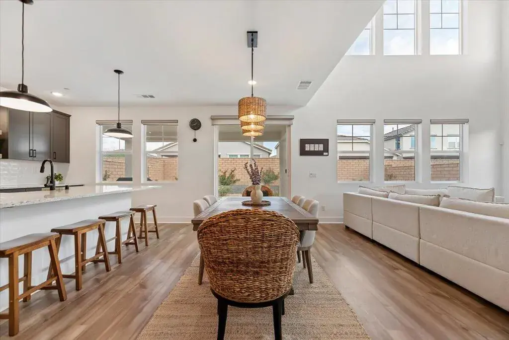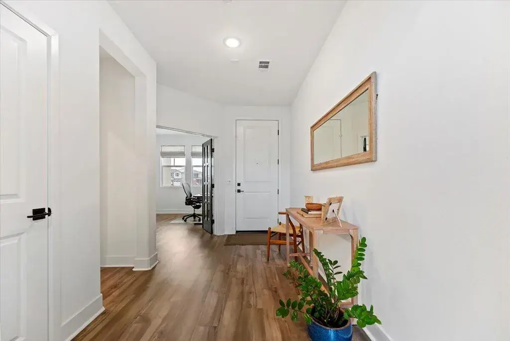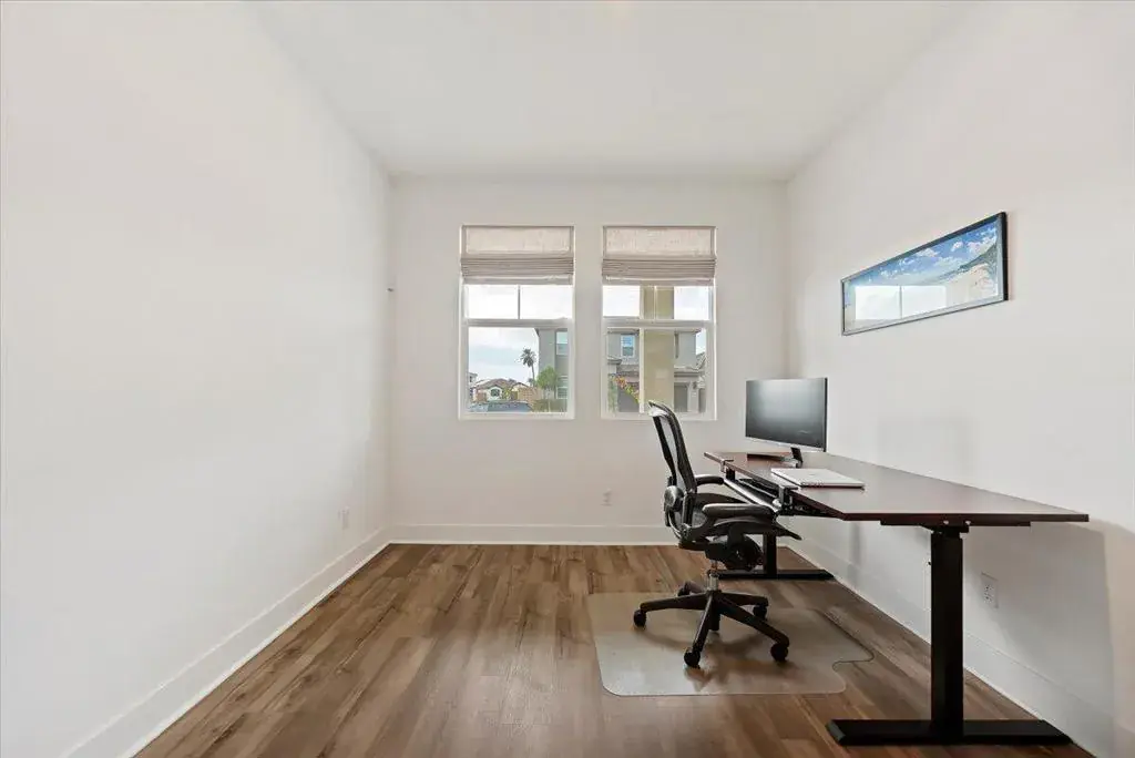 PRICE REDUCTION! Located in the gated community of Aguila at Terra Lago in North Indio, this upgraded newer-build home offers modern desert living with a flexible floor plan, energy-efficient features, and a peaceful setting on a quiet interior street.The layout includes a private office with French doors and a closet, conveniently located next to a full bathroom with shower, making it ideal as a guest bedroom, private workspace, or multi-generational living space. The kitchen features Shaker-style cabinetry, granite countertops, stainless steel appliances, and upgraded flooring throughout the main living areas. Custom window treatments include motorized solar shades for tall windows that never require recharging.Energy-efficient upgrades include fully paid solar panels with bird proofing and a tankless water heater for added convenience and long-term savings. The professionally landscaped backyard offers a covered patio, concrete hardscaping, lush grass, fruit trees, and proper drainage, creating an inviting outdoor space for relaxing or entertaining.Upstairs, a spacious loft provides flexible living space ideal for a media room, playroom, or secondary lounge. The primary suite features dual walk-in closets, dual vanities, a spa-style bath, and beautiful views of the Indio Hills from the primary bathroom window.A move-in-ready home offering modern comfort, efficiency, and flexible living in one of North Indio’s desirable gated communities.