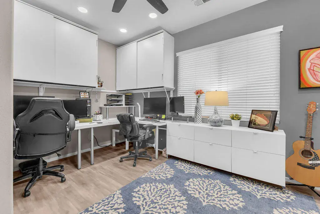 Located in the highly desirable Terra Lago community, this single-level, move-in ready home stands out with modern luxury upgrades and an unbeatable lifestyle setting. The open and spacious great room floor plan is built for both everyday living and entertaining, featuring a stone-backed fireplace with custom mantle and hearth, formal dining space, breakfast nook, and a versatile 4th bedroom or office option that opens through French doors into a private, gated courtyard entry.The master bath is fully remodeled and feels like a personal spa retreat, complete with a dual headed shower, rain shower, custom controls, premium lighting, and high-end fixtures throughout. The space also includes a 4’x7′ custom sauna built directly into the master bath, creating a true luxury experience at home. The master closet has been fully built out with custom shelving and additional storage. The half bath is also remodeled with modern hardware, upgraded lighting, and an elevated design.Major upgrades include owned solar, a whole-house water filtration system, low-maintenance landscaping with artificial turf, a well-maintained garden with custom landscape lighting, an Alumawood-covered patio showcasing mountain views, lattice window covers, tandem garage storage, a custom built shed with double-gate access, and a recently refreshed and painted exterior.Terra Lago offers resort-style amenities including a clubhouse, pool, spa, fitness center, and social spaces, all within walking distance. Privacy, luxury, convenience, and lifestyle come together in one of the best communities in the desert. This home is truly a standout inside of it.
