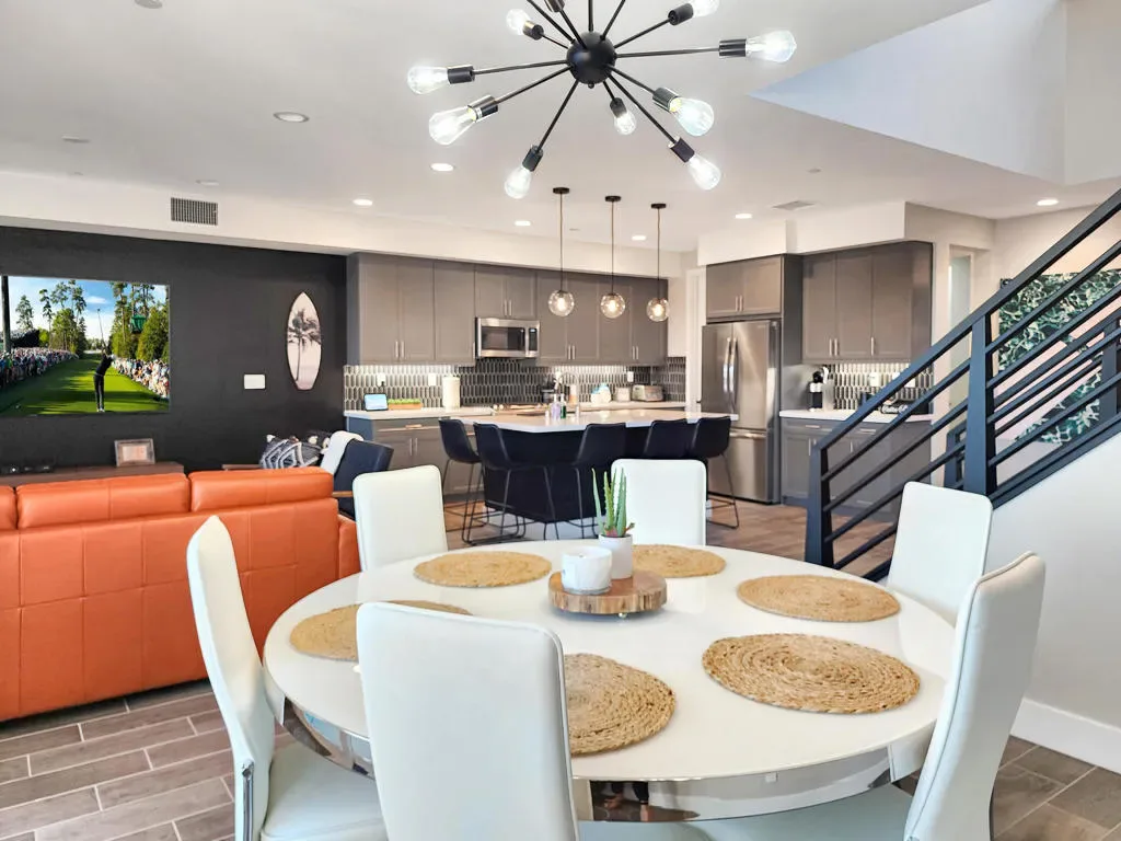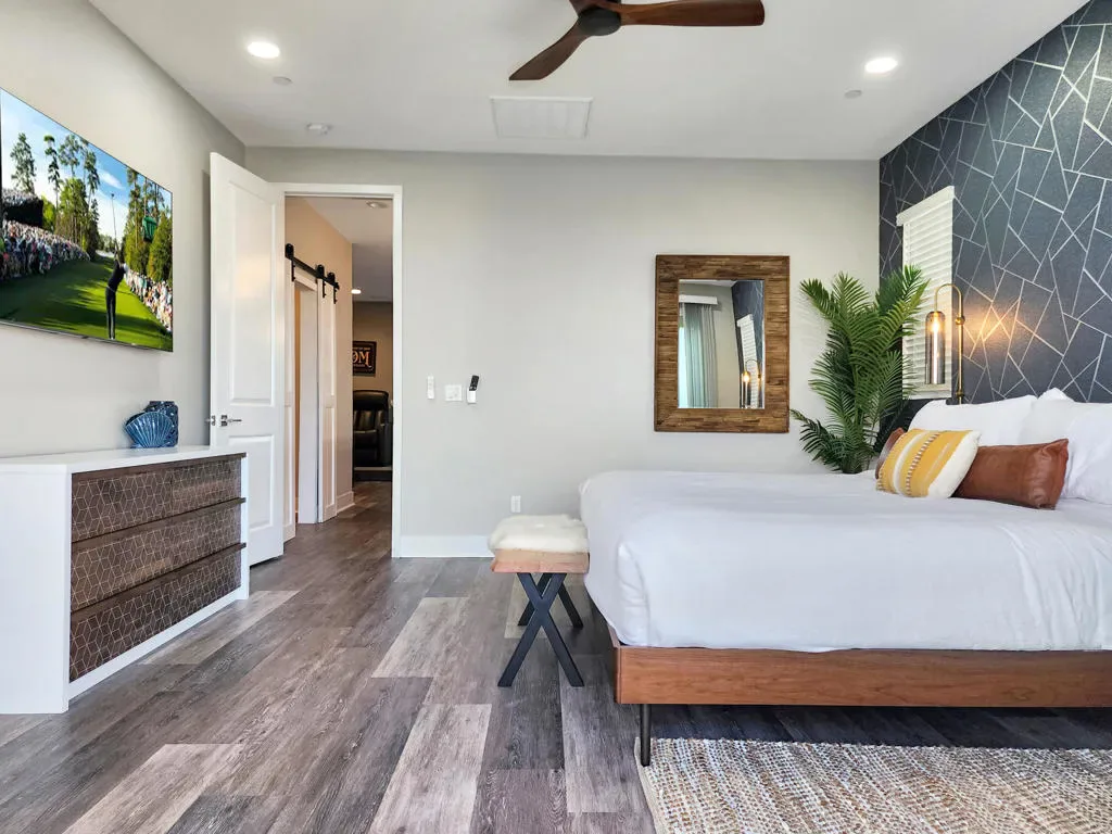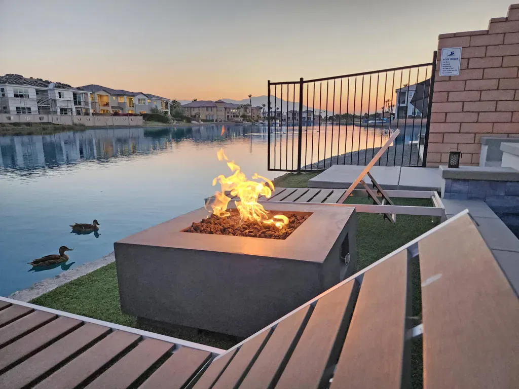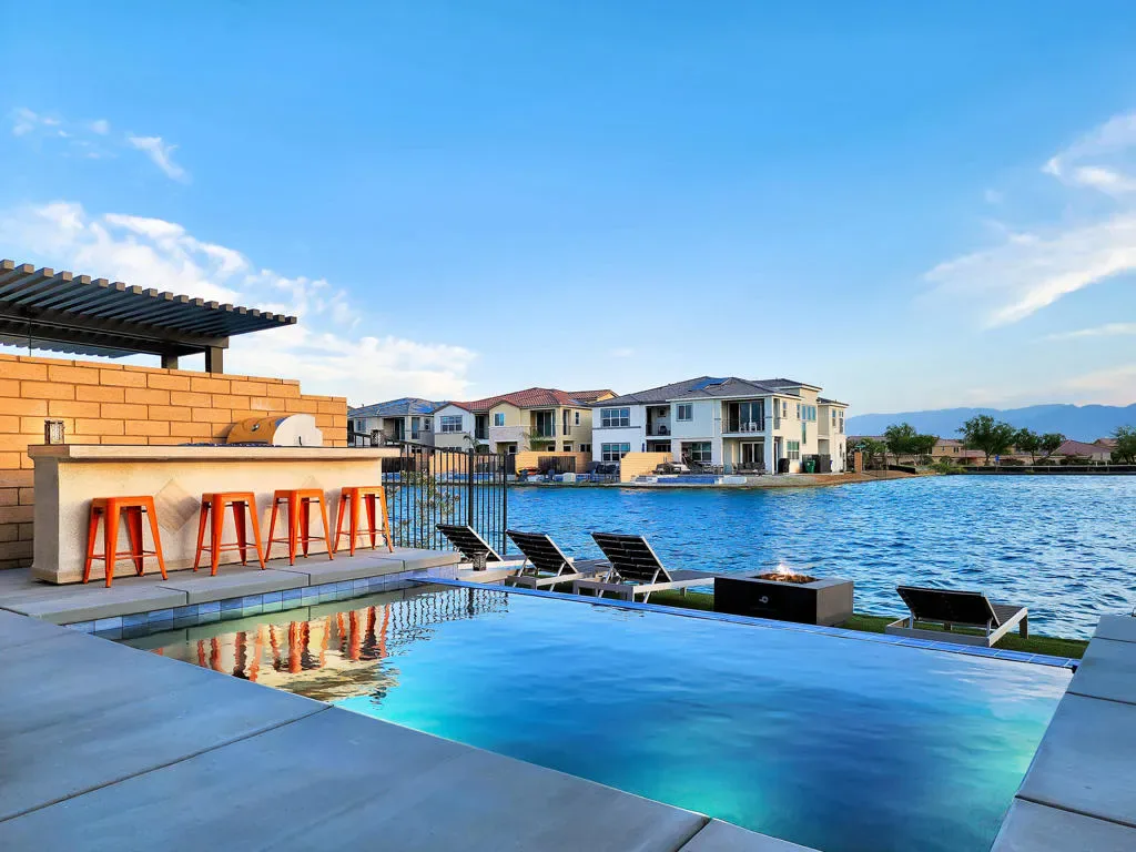 This upgraded, professionally managed lakefront short-term rental is ideally positioned on the water in Terra Lago, offering breathtaking lake and mountain views along with a private infinity-edge pool and spa. Designed for both comfort and performance, the home features bright, open living spaces and high-quality finishes throughout–purpose-built to maximize rental demand and guest satisfaction.The upgraded kitchen is fully equipped with stainless-steel appliances, custom quartz countertops, a dramatic waterfall island, designer backsplash, and a dedicated coffee bar–ideal for entertaining and extended guest stays.The spacious living room provides generous seating, an 86” smart TV, and a sleeper sofa for flexible use. Expansive windows and sliding glass doors flood the home with natural light and create a seamless indoor-outdoor living experience centered around the stunning waterfront setting.The well-designed floor plan includes four bedrooms, including a first-floor suite, with ensuite bathrooms for every bedroom–a highly desirable feature for short-term rental guests. The upstairs primary suite offers a private balcony overlooking the lake and a spa-inspired bathroom with soaking tub. A bonus room adjacent to the primary suite functions as a dedicated kids’ room with bunk beds, maximizing sleeping capacity and rental flexibility.Additional highlights include a movie-theater-style room with eight reclining chairs, a climate-controlled game room with commercial-grade arcade games (including air hockey and basketball), built-in BBQ, firepits, smart TVs throughout, and a layout ideally suited for short-term rental or second-home use. This is not just an STR–it is a destination property, offering resort-style amenities that keep guests on-site and drive repeat bookings.Located in the highly desirable Terra Lago community, this turnkey, high-performing lakefront asset delivers a proven two-plus-year short-term rental history with approximately $120,000 in annual gross income. All capital improvements and guest-driven upgrades are complete–this property will be generating income from day one.Zero setup. Zero downtime. Immediate cash flow.Investors also have the rare opportunity to scale instantly by acquiring the sister property at 43250 Pietra Ct, also in Terra Lago–creating a ready-made, multi-property short-term rental portfolio in one of the Coachella Valley’s most sought-after resort communities.