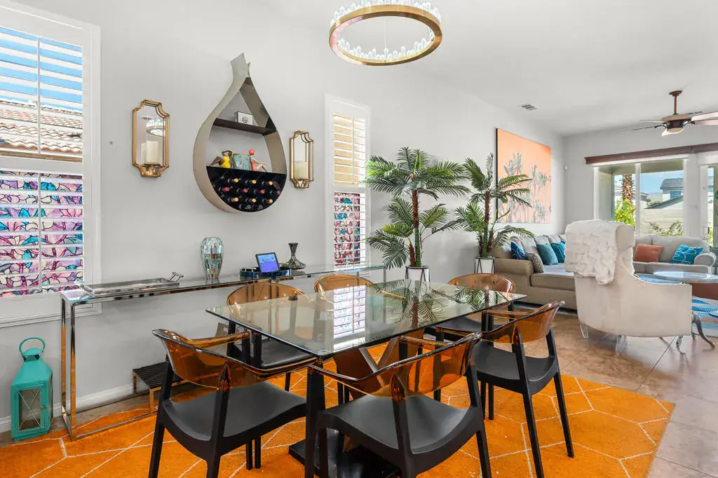 Welcome to Terra Lago in Indio! This stunning 4-bedroom, 2-bathroom single-level home is currently operated as a successful Airbnb and offers excellent short-term rental income potential–a rare opportunity in a community that allows STRs.Step inside to find an open floor plan with soaring 10 ft. ceilings, creating a spacious and inviting atmosphere. The home is being offered unfurnished but can negotiate making it turnkey for investors or those seeking a ready-to-enjoy vacation retreat.Outdoors, enjoy a brand-new pool and spa, dual fire pit, and desert landscaping designed for minmal maintenance. Recent upgrades include brand-new solar panels and an EV charger in the garage.Located on a private cul-de-sac, this home provides both seclusion and easy access to the many resort-style amenities Terra Lago offers. The guard-gated community boasts a 20-acre lake. Residents also enjoy a clubhouse with billiards and ping pong, a library, fitness center, and a community pool and spa.Perfectly located for festivals and the total desert expierience. Don’t miss your chance to own a premier short-term rental property in Terra Lago!