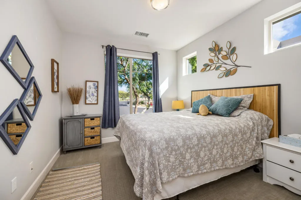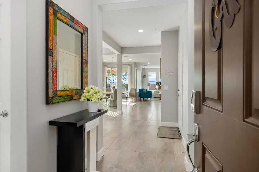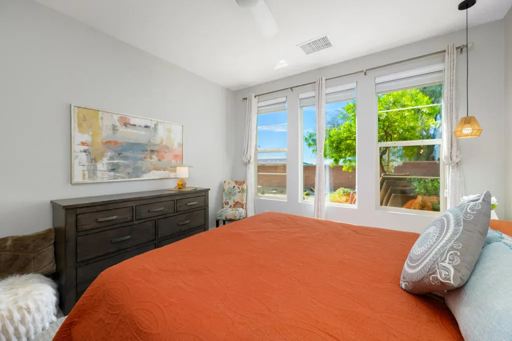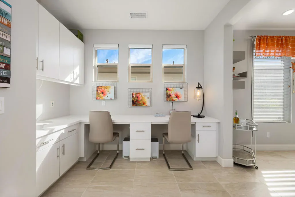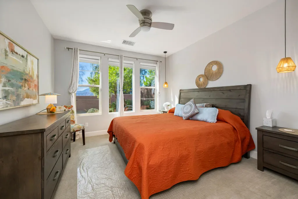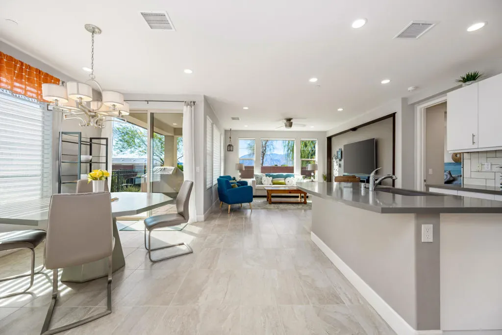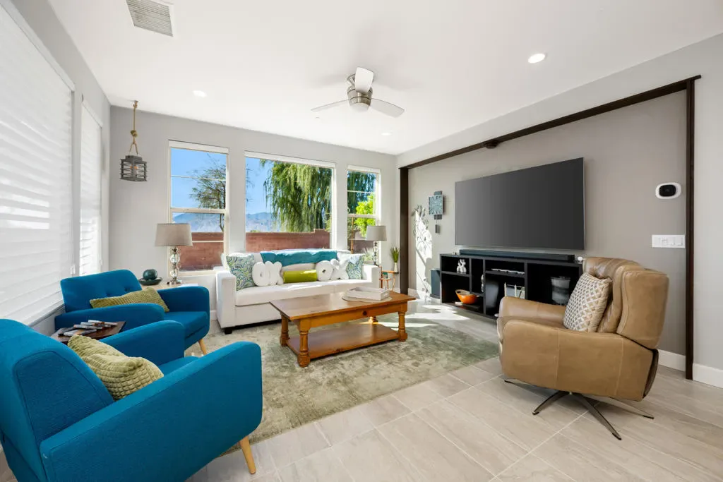With an open-concept floorplan and thoughtful upgrades throughout, this Muros floor plan offering 2BR/2BA + office with built-ins. Offering flexible living space with a large open great room that includes an entertainment area wall and dining area, that makes a stunning use of space. At the heart of the home is a gorgeous kitchen with upgraded cabinetry and drawers, quartz countertops with glass tile backsplash, and an intimate island where your guests can sit and chat while you prep and chop. You’ll fall in love with the spa-inspired primary bath with tile flooring, a gorgeous double vanity with framed mirrors, and upgraded shower. The guest sweet is private and Brite, the guest bath has a tub shower combo. Garage with epoxy flooring and 220 in the garage for your car charger. You will fall in love with the rear patio outdoor living space. Offering one of a kind outdoor living with awning. The open park-like setting is unlike most condo locations, with SOUTH unobstructed mountain views. This home is clubhouse close, Immaculate inside and out and a must. Call Michael for your showing today.