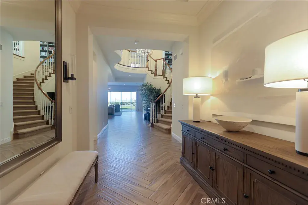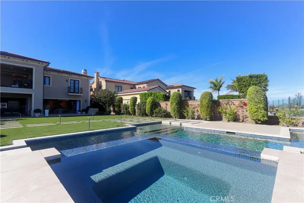 Discover an extraordinary opportunity to own a rare 11,000 sqft estate nestled within the exclusive, guard-gated community of Hidden Canyon, renowned for its stunning city and mountain vistas. This luxurious property boasts a lush backyard featuring a full suite of amenities, including a BBQ island, swimming pool including four 25-yard lap lanes, hot tub, water fountain, paved patio, and a shaded California Room with a fireplace, perfect for entertaining. The back of the home offers breathtaking panoramic views of the Irvine Spectrum, OC Great Park, and Trabuco Canyon mountains from the elevated 180-degree vantage point. Located at the end of a quiet street, 105 Iron Gate is a beautiful Capri Collection Plan 5 residence that welcomes you with an elegant tiled entry, a dramatic spiral staircase, and a grand foyer with soaring ceilings and a dazzling chandelier. The spacious family room, illuminated by retractable sliding doors, features a cozy fireplace and designer lighting with remote-controlled drapery. The chef’s kitchen showcases double islands with granite counters, premium appliances including a 6-burner WOLF range, double ovens, microwave, and a double-door built-in refrigerator, plus a discreet prep kitchen and walk-in pantry. A private in-law suite with its own bath and entrance offers additional comfort on the main level. Upstairs, you’ll find a versatile loft, three en-suite guest bedrooms, and a luxurious primary suite with a private balcony, sweeping views, a large walk-in closet, dual vanities, a spa-inspired tub, and a spacious walk-in shower. Dual laundry rooms, a community resort-style pool, cabanas, clubhouse, parks, trails, all within top-rated schools and just minutes from shopping, airports, freeways, and the stunning Laguna beaches.