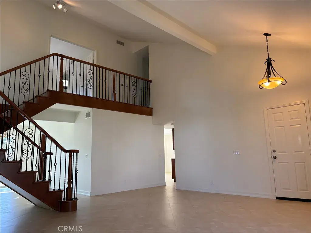 Step into a grand foyer with soaring ceilings that open to a bright living room and formal dining area with direct kitchen access. The upgraded kitchen features custom granite counters and contemporary finishes, flowing into a warm family room with a cozy fireplace. Sliding doors invite you to a private backyard framed by mature trees, citrus, and vibrant flowering plants—ideal for entertaining or relaxing outdoors.