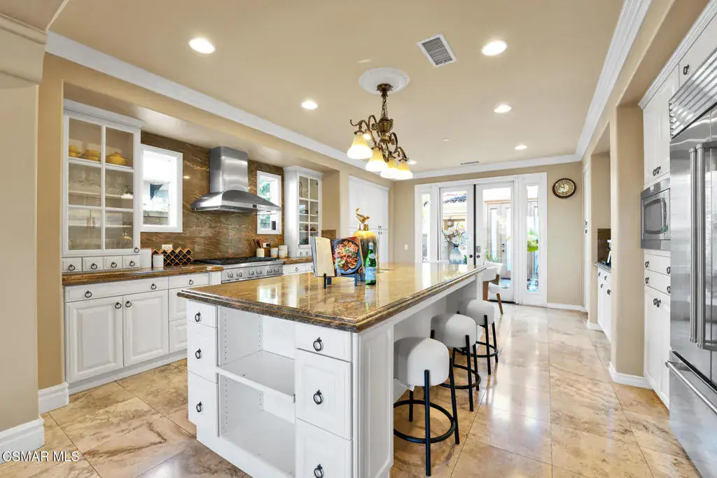 Enjoy panoramic views of Irvine, Newport Beach, and the sunset from the comfort of your backyard while grilling on your built-in BBQ. This classy house is endowed with two suites on the first floor, each with its own bathroom. In addition, a casita for guests sits outside the main house, featuring its own thermostat and bathroom. Other highlights include wooden floors throughout and Subzero refrigeration.