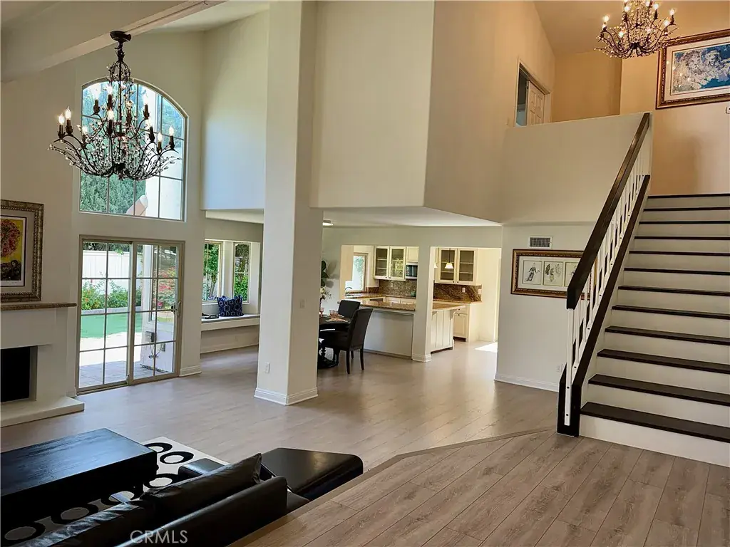 Rebuilt in 2014, the home features newer plumbing, electrical systems, HVAC, and two tankless water heaters. It boasts 5 bedrooms (including two upstairs suites and one downstair bedroom), 4 full bathrooms(including one full bathroom downstair), and a 3-car garage with driveway. As you step inside, you’ll be greeted by a bright and airy open floor plan that seamlessly combines modern design with timeless elegance. The formal living room impresses with cathedral ceilings, a gorgeous charming chandelier, and a custom fireplace, while the formal dining room features a bay window with built-in seating overlooking the lush garden. The gourmet kitchen offers custom wood cabinetry with glass panel doors, granite countertops, and a walk-in pantry. The spacious family room features an elegant electric fireplace and recessed lighting. Recently remodeled. A newly custom-designed staircase completed in 2025 year adds a touch of modern sophistication. A downstairs bedroom with a full bath is perfect for guests or multi-generational living. Upstairs, the primary suite offers dual vanities, a walk-in closet with built-in organizers, and a beautifully remodeled bathroom with custom tile flooring, a soaking tub, and a separate shower. The second-floor laundry room includes built-in cabinets and a utility sink for convenience. The private backyard is a blooming oasis, featuring a spacious paved area—ideal for entertaining or quiet relaxation.