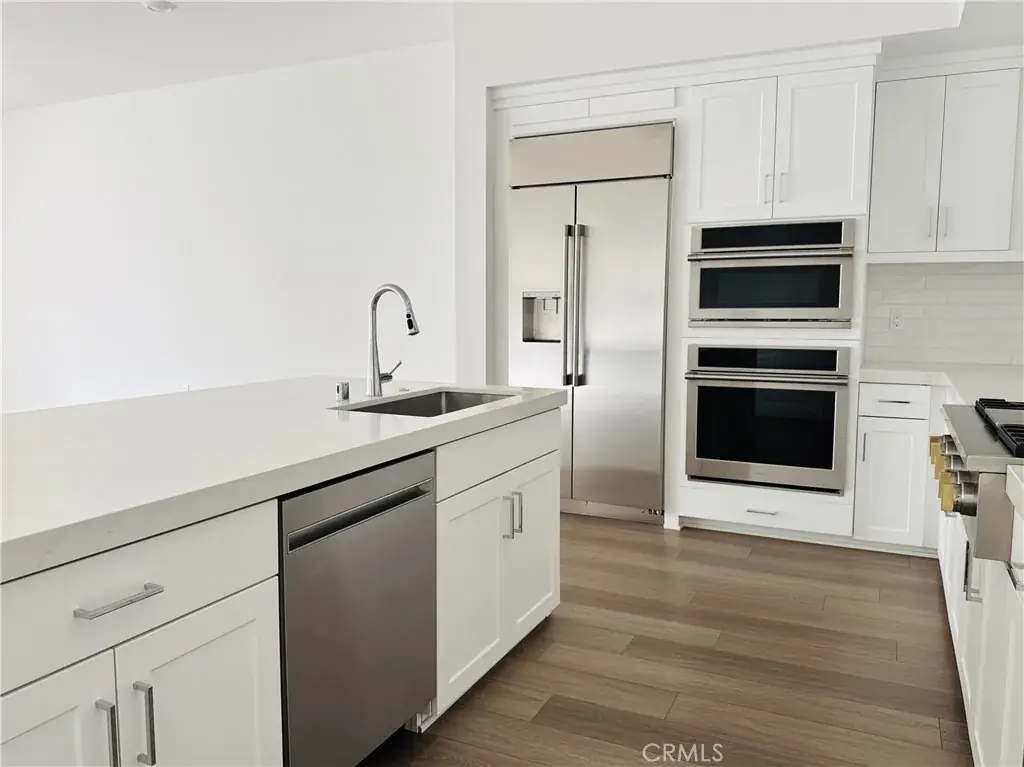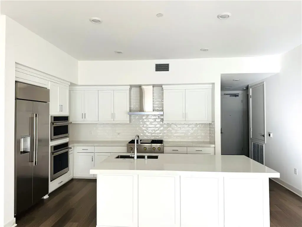 Enjoy courtyard and mountain views from this newly built ,extensively upgraded luxury residence located on the SIXTH floor of the exclusive Lexington enclave at Central Park West—Orange County’s premier mid-rise community. This single-level flat offers 1,473 square feet of thoughtfully designed living space, featuring one spacious primary suite plus a den/office, two full bathrooms, a large private balcony, and two tandem assigned parking spaces conveniently located near the elevator. Situated in Building B (the main Lexington building), residents enjoy a grand circular driveway with valet-style drop-off, a luxury Lobby, and a fully equipped fitness center accessible directly from the lobby. The seven-story Lexington building is known for its distinctive architecture and elevated lifestyle. Interior highlights include custom flooring, white Shaker-style cabinetry with under-cabinet lighting, quartz countertops, a custom white tile backsplash, and stainless steel GE Monogram smart appliances, including a refrigerator, convection oven, 5-burner gas cooktop, and dishwasher. The primary suite showcases serene mountain views, walk-in closets, and plush custom carpeting. The spa-inspired primary bathroom features dual vanities, an expansive walk-in shower, and a luxurious soaking tub.