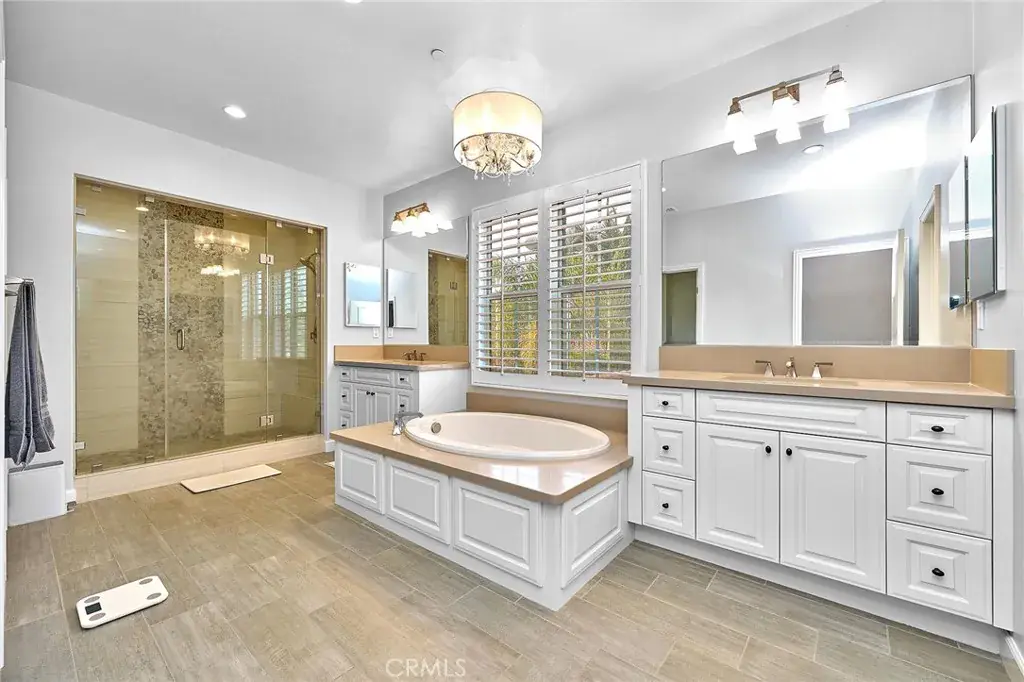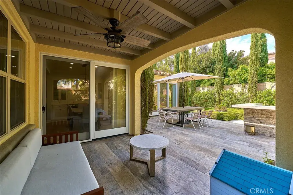 Premium CORNER LOT with a Huge backyard in Woodbury. Don’t miss this stunning 4-bedroom, 4.5-bathroom Spanish-style House. This home features 9Kw Solar System, a New Water Treatment System, Wifi Light Switch & Dimmer, Epoxy Garage Floor and Upgraded Garage Cabinets, Hardwood flooring on the main level. The gourmet kitchen is equipped with custom marble countertops, a full backsplash, built-in refrigerator, and flows into a dining room with built-in cabinets and double wine fridges. The great room showcases a cozy fireplace, motorized roller shades, wood shutters, and elegant draperies. Upstairs, you’ll find a spacious loft perfect for a home office, study area, or playroom. The primary suite offers dual vanities, a walk-in shower, soaking tub, and a custom-designed walk-in closet. Enjoy the tranquil backyard, with a California Room, built-in BBQ, and a pizza oven. Woodbury offers top-tier amenities including pools, spas, tennis and basketball courts, BBQ areas, parks, playgrounds, and scenic trails. Walking distance to award-winning Woodbury Elementary School, Woodbury Town Center, and several Montessori daycares. This home is 1 min walk to the community pool and spa.
