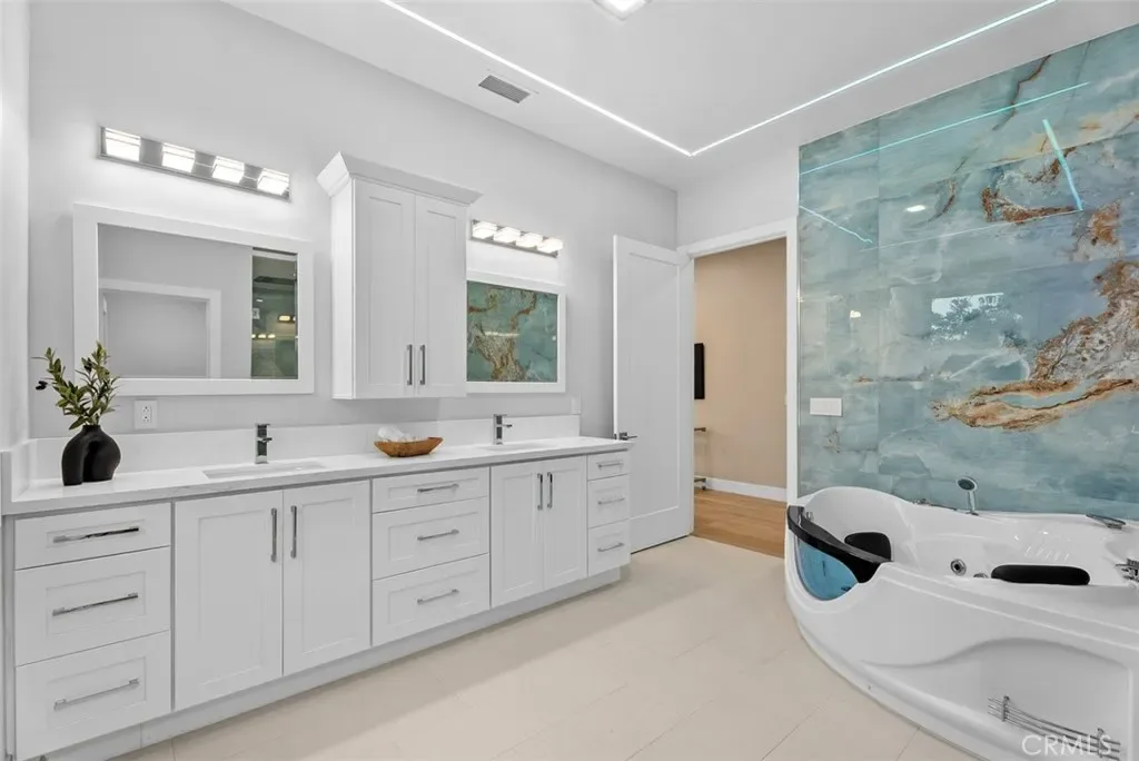Exceptional brand new home with NO MELLO-ROOS, perfectly situated in the heart of Irvine. Thoughtfully designed and featuring 4 en-suite bedrooms, including a **highly desirable main-level suite—ideal for multi-generational living or hosting guests—**and effortless indoor-outdoor living. The bright great room welcomes you with a stunning 100” fireplace, a custom-designed bar area perfect for gathering with friends and family, and sliding doors that open to the backyard.