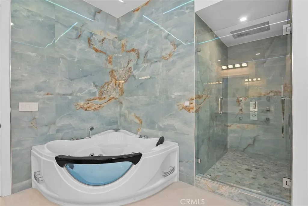 Thoughtful upgrades include marble and European oak flooring, glass railings, LG wash tower, smart home features, solar panels, EV charger, and security cameras.