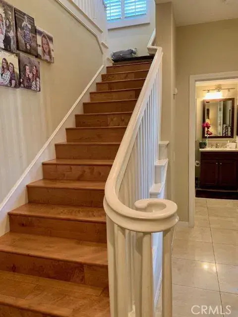 Immaculate 4-bedroom single family home located at the Pacific Village in the Stonegate community within the prestigious Irvine Unified School District. Close to shopping and nestled inside a quite neighborhood. With a downstairs bedroom (can use as an office) and bathroom. Spacious grand room opens to a fabulous kitchen which features great size countertops and upgraded birch chocolate glazed cabinets. Laundry room is in downstairs as well. upstairs come with 3 bedrooms and 3 full bathrooms (2 bathrooms are inside the bedrooms). Crown moldings in master bedroom, great room and kitchen as well. Shutters in all windows except the downstairs grand room, where have the curtains or drapes. Tiles throughout the ground floor and hardwood on the second floor. A tank-less water heater, storage cabinet with a refrigerator in the garage.