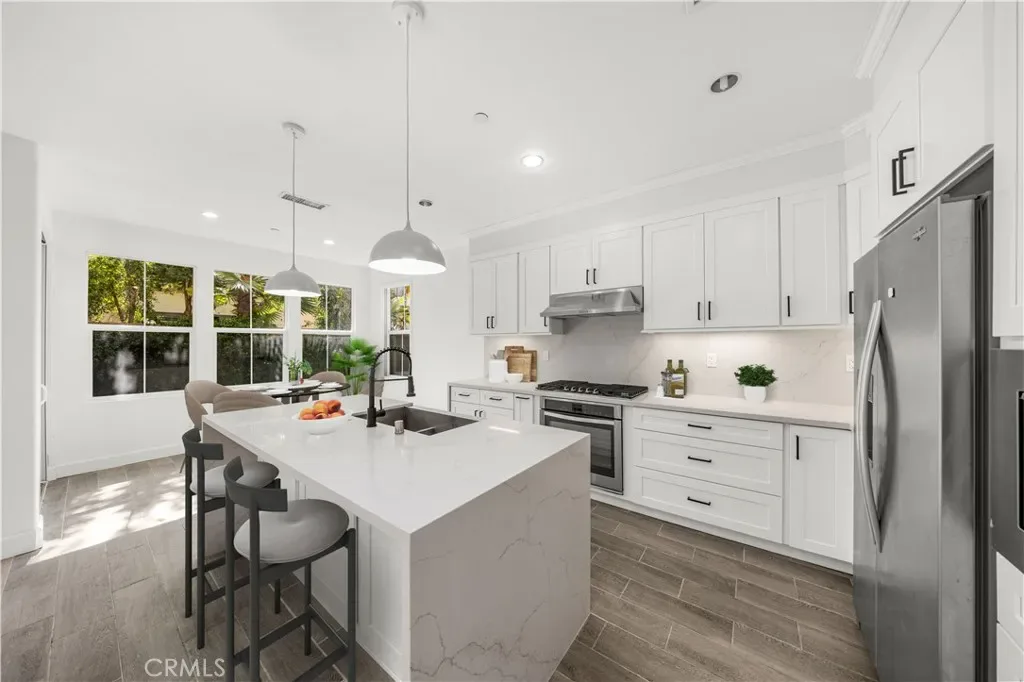 Fully Remodeled in 2026 with fresh interior paint throughout, brand-new wood/tile/vinyl flooring, LED Lighting, countertops, cooktop, range hood, microwave and kitchen cabinets, this stunning corner-lot unfurnished residence is located in the highly sought-after Cypress Village community of Irvine. Bathed in abundant natural light, this unfurnished home offers a bright, welcoming atmosphere and an exceptional lifestyle opportunity. This beautifully designed 3-bedroom, 2.5-bathroom home features a spacious primary suite with brand new ToTo Toilet and a walk-in closet complete with a built-in organization system, a private ensuite bathroom. Upstairs bedrooms come with custom-made silk curtains. The thoughtfully designed floor plan provides comfortable and functional living spaces ideal for everyday life. Two additional bedrooms are located upstairs with a shared bathroom; one bedroom can easily serve as a bonus room or home office. The laundry room includes a utility sink along with a washer and dryer for added convenience. Step outside to your own private backyard retreat, highlighted by mature landscaping and a tranquil water fountain. The yard boasts a flourishing grapevine, multiple fruit trees, and dedicated space for a vegetable garden, perfect for gardening enthusiasts, outdoor dining, or simply relaxing in a peaceful setting. Resort-style amenities are located directly across the street, including a community swimming pool, BBQ area, and entertainment space, truly one of the most desirable locations within Cypress Village. Residents enjoy exclusive access to six beautifully maintained parks, four sparkling pools, lighted tennis courts, baseball and soccer fields, and basketball courts. Ideally situated within walking distance to Cypress Village Shopping Center and Woodbury Town Center, and just minutes from additional premier shopping, dining, and grocery destinations. Convenient access to major freeways, including I-5, I-405, 133, 241, and 73, makes commuting effortless. This home is move-in ready and will be delivered unfurnished. A rare opportunity to enjoy a private garden oasis in the heart of Irvine, where comfort, convenience, and resort-style living come together beautifully. Some photos have been virtually enhanced to illustrate potential use of space.