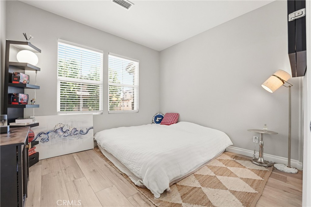 Privately situated on its own level, the luxurious primary suite offers a tranquil retreat complete with a spa-inspired bathroom featuring dual vanities, a relaxing soaking tub, and a separate walk-in shower.