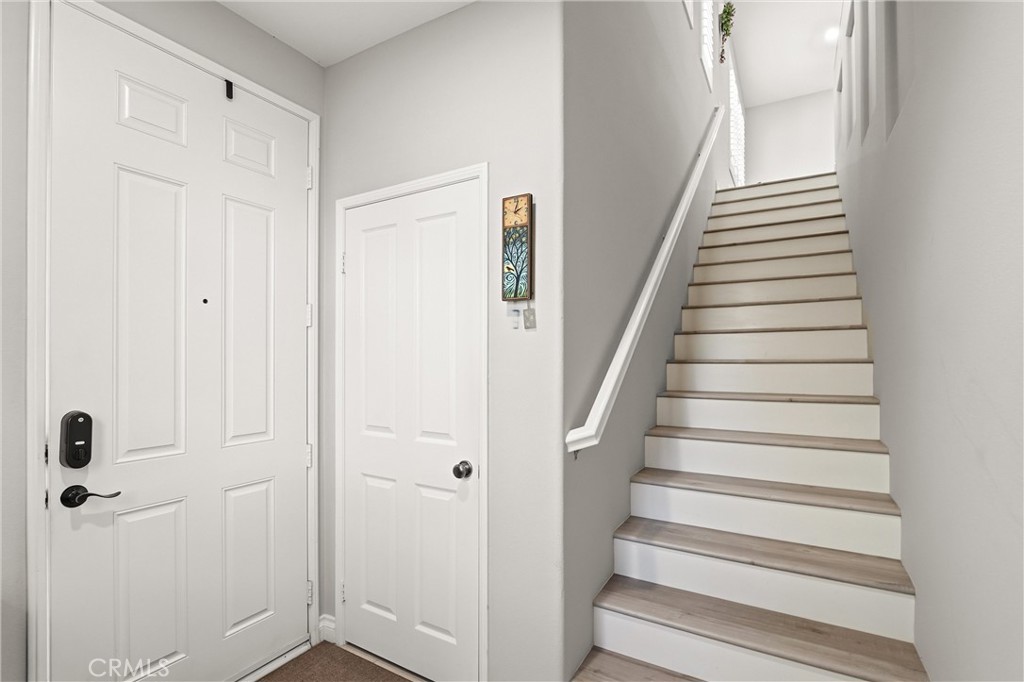 Additional upgrades throughout the home enhance both comfort and sophistication, including luxury laminate flooring, elegant plantation shutters for refined light control, and mirrored closet doors that add both style and functionality. The home also includes a newer refrigerator, as well as a newer washer and dryer for added convenience.