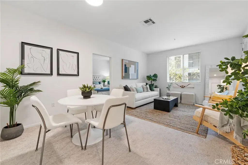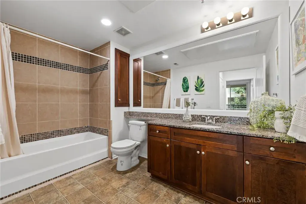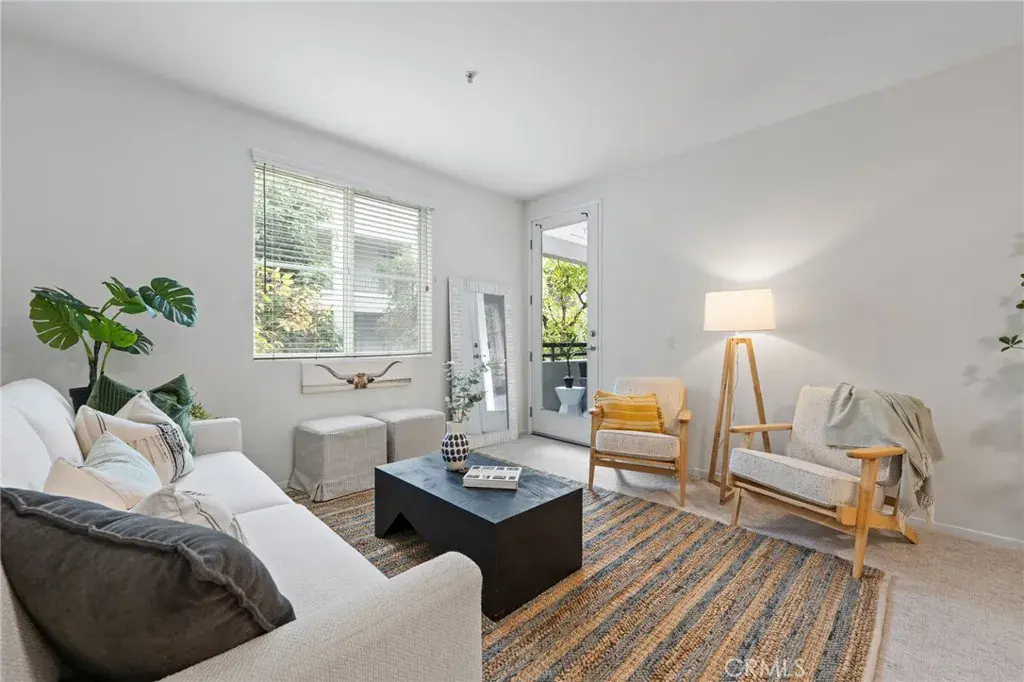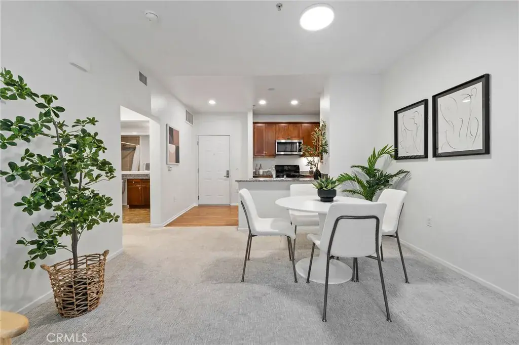 Experience resort-style living at Avenue One! This spacious 2BR/2BA condo offers a quiet interior location with serene garden views. The modern kitchen features natural granite slab countertops, European-style cabinetry, hardwood-style flooring, and a stainless steel Whirlpool refrigerator. Dedicated laundry room with hookups conveniently located off the kitchen. Both generously sized bedrooms include walk-in closets. The secondary bedroom features direct private patio access. Bathrooms showcase elegant tile and granite countertops. Two tandem parking spaces in gated garage included. Premium amenities: pool, spa, fitness center, basketball court, putting green, BBQ/picnic areas, playground, horseshoe pit, business center, conference room, and clubhouse. Prime Irvine location minutes from John Wayne Airport, UCI, shopping, dining, entertainment, beaches, and 405 freeway access.