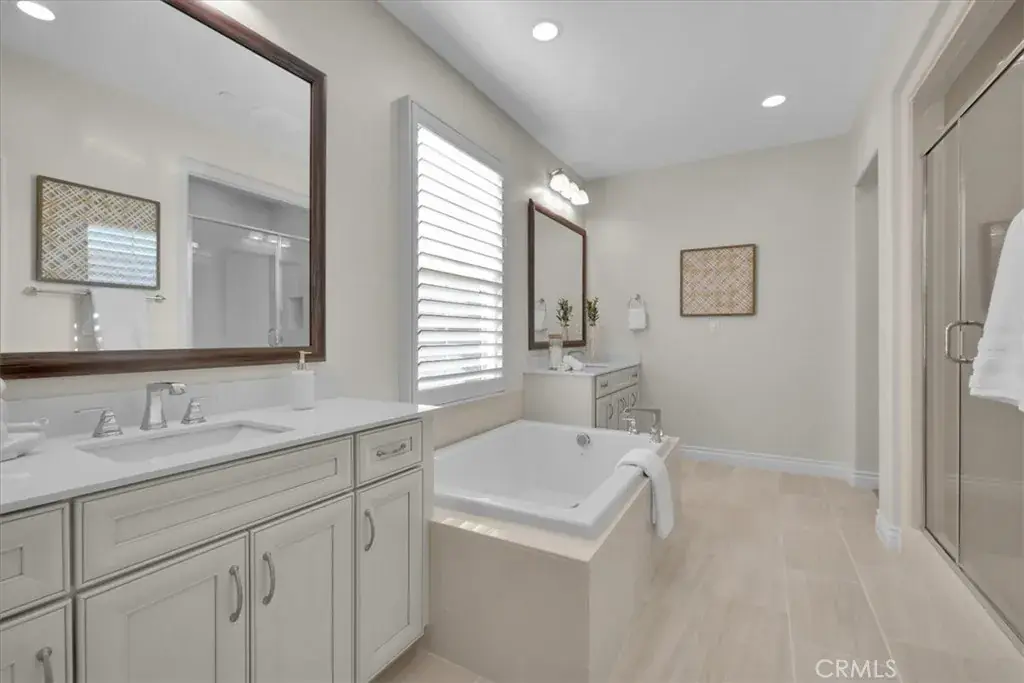 RARE – Upgraded, Bright and Airy, Single-family Home located in the highly desirable Eastwood Village in Irvine! This large home includes 4 bedrooms and 3 bathrooms + an upstairs flex area! The very bright and open floor plan has a spacious living room that flows seamlessly to both kitchen and dining room. The living area opens to the gourmet kitchen with a large center island. Features granite kitchen countertops with upgraded full backsplash and white kitchen cabinets, stainless steel appliances = 6-burner cook top, build-in ovens, microwave, refrigerator and dishwasher. One Bedroom with Bathroom/Shower on the first floor. On the second floor, you will find a loft and three bedrooms! A master bedroom suite with walk-in closets, double sinks, stand-alone tub and large walk in shower! Enjoy the parks, swimming pools, and kids playground and just a short walk to Eastwood Elementary School! Zoned to Sierra Vista Middle School and Northwood High School! Close to the Jeffrey Trail Open Space Trail, Woodbury town center, and major Freeways. Welcome Home!
