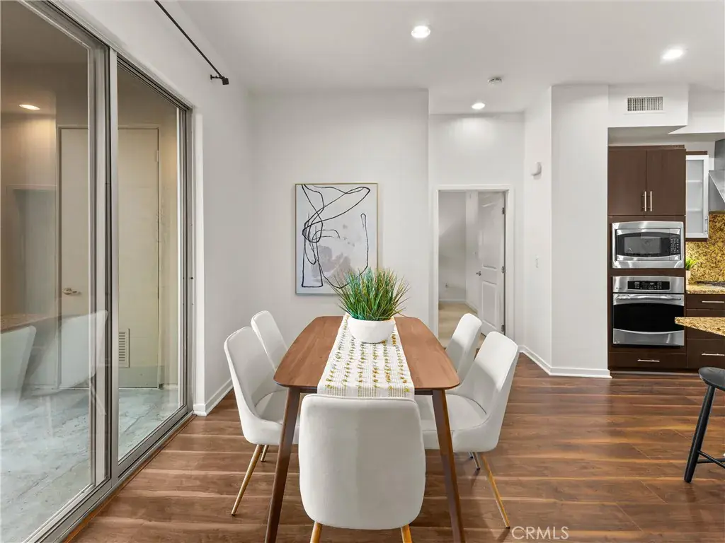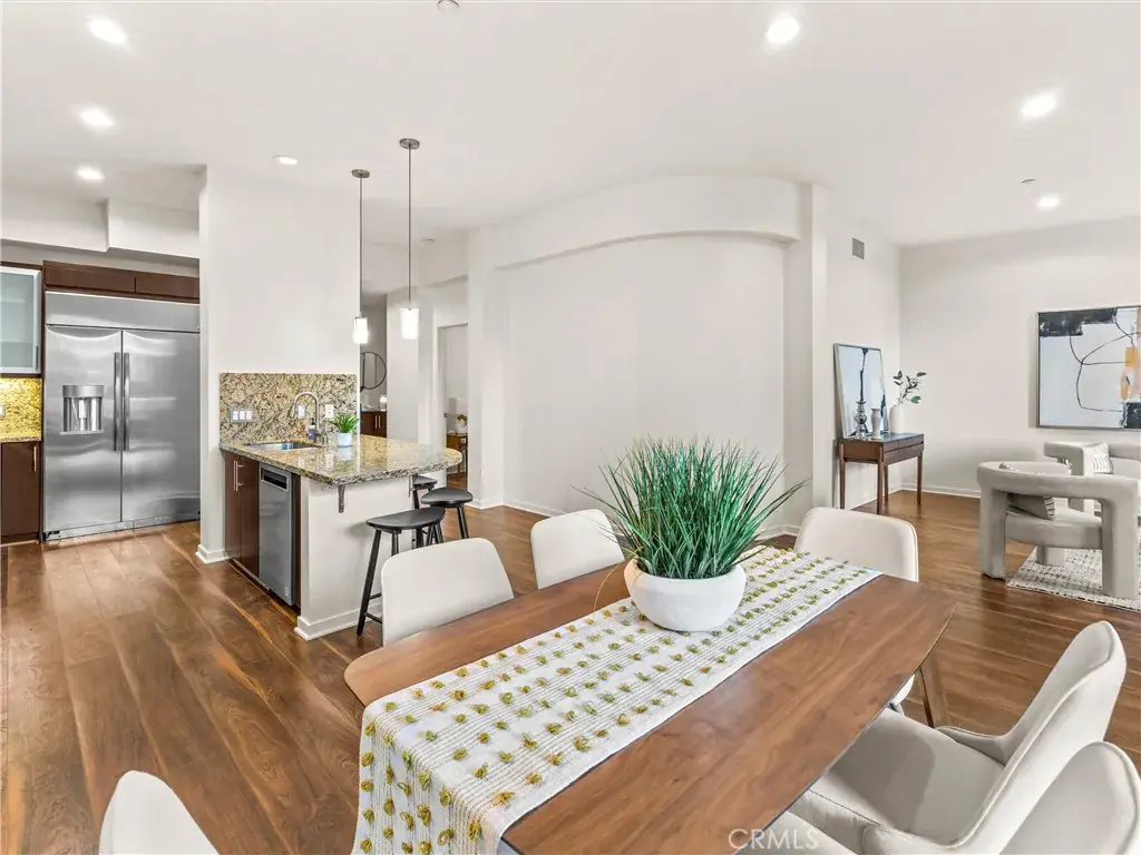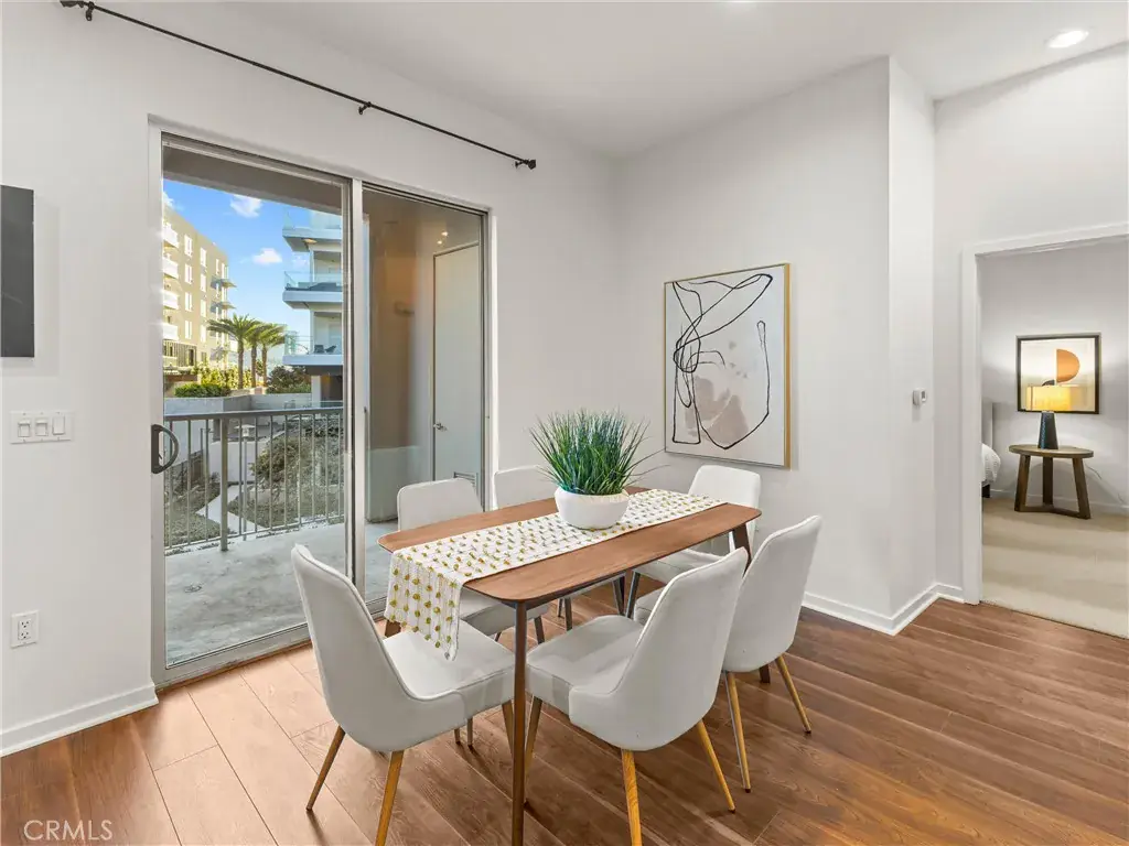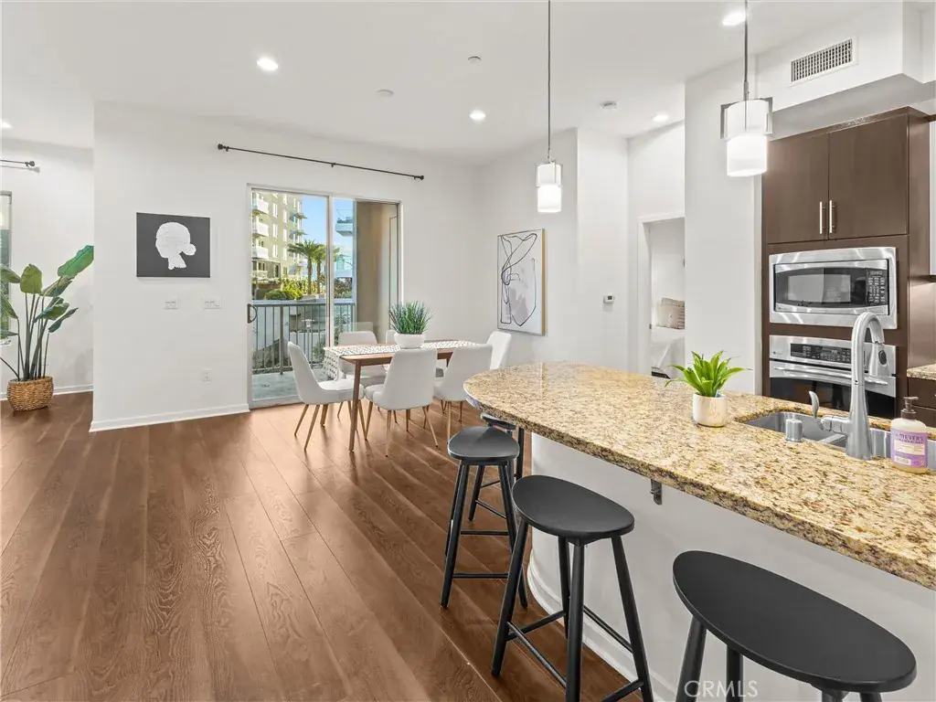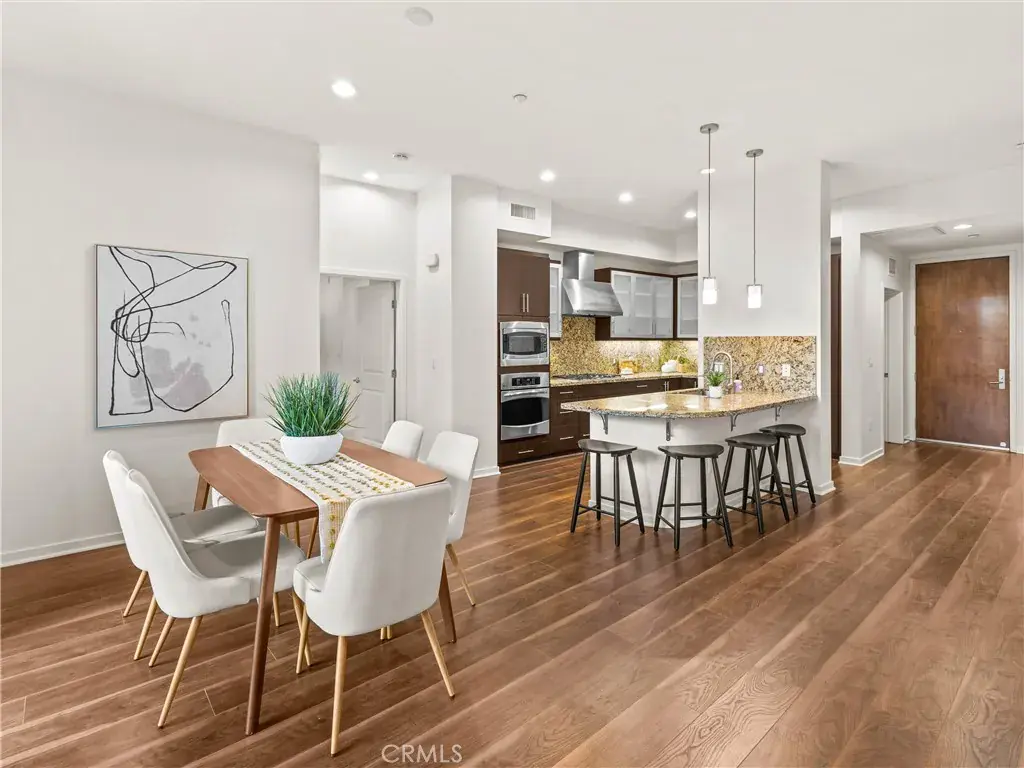 Residence 208 is a Single-Level Condo Located in Irvine’s Central Park West Community at The Belvedere, Offering a Well-Balanced Layout with Open Living and Dining Spaces that Feel Connected without Feeling Crowded. Wide-Plank Wood Flooring, Recessed Lighting, and Large Windows Bring in Natural Light Throughout the Main Living Area. A Sliding Glass Door Opens to a Private Balcony with Space for Seating and Everyday Outdoor Use.