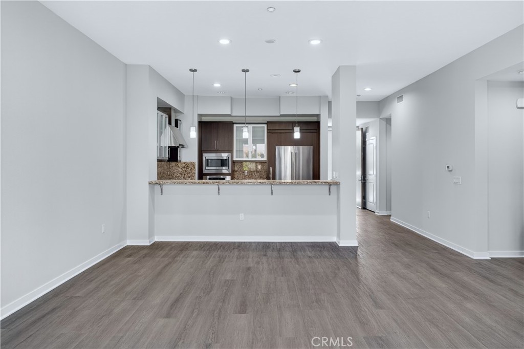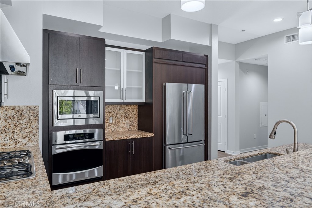 Welcome to The Belvedere at Central Park West—where modern design meets an exceptional Irvine lifestyle. This light-filled condominium showcases an open-concept floor plan, seamlessly blending the kitchen, dining, and living areas to create a bright and inviting space ideal for both everyday living and entertaining. The gourmet kitchen is beautifully appointed with granite stone counters, a large built-in stainless steel refrigerator and premium appliances, offering both functionality and sophistication. Just off the living room, a private balcony provides the perfect setting to relax, unwind, or enjoy your morning coffee. Thoughtfully designed for privacy, the two bedrooms are set apart from the main living areas.