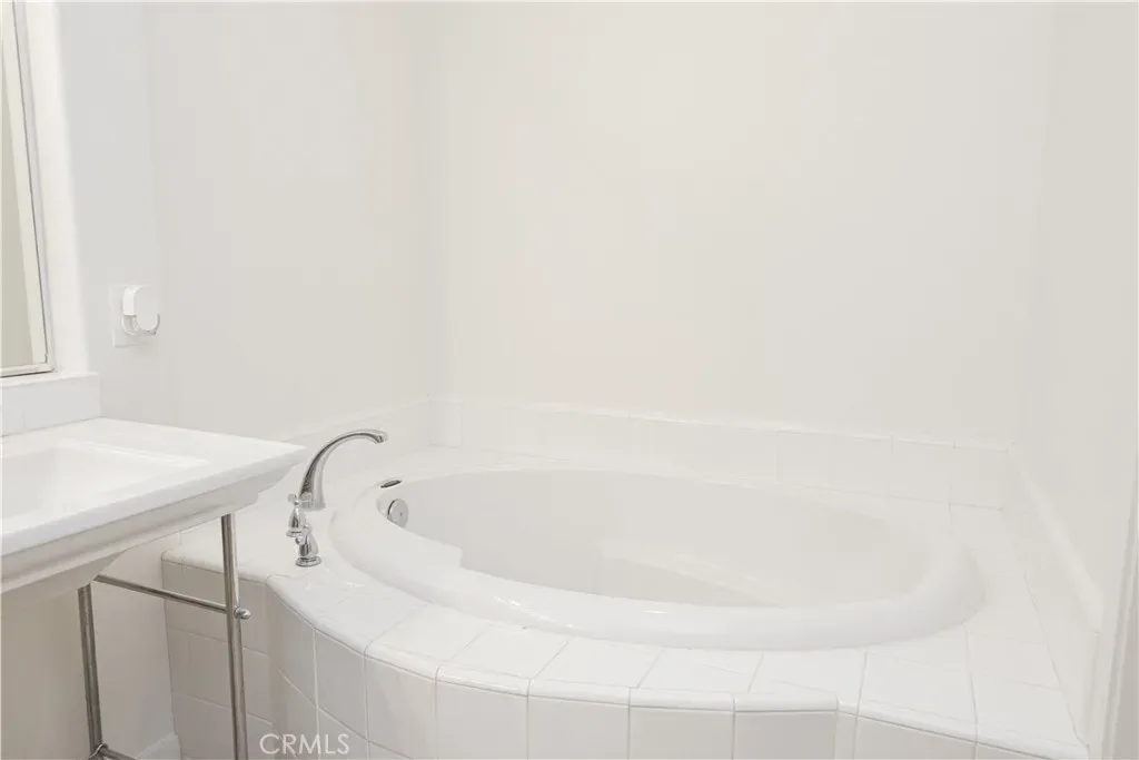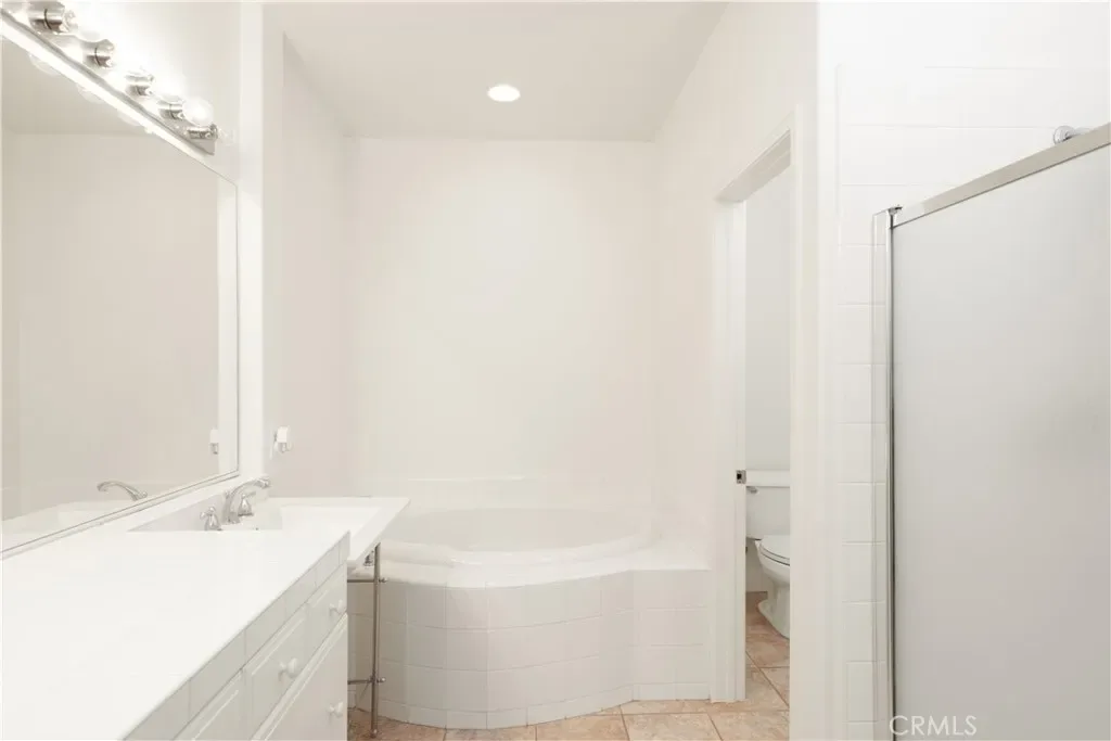 Upstairs, the entire third level is dedicated to the spacious primary suite, offering privacy and a relaxing retreat. This well-appointed space includes a walk-in closet and an en-suite bathroom with dual vanities, a soaking tub, and a separate enclosed shower.