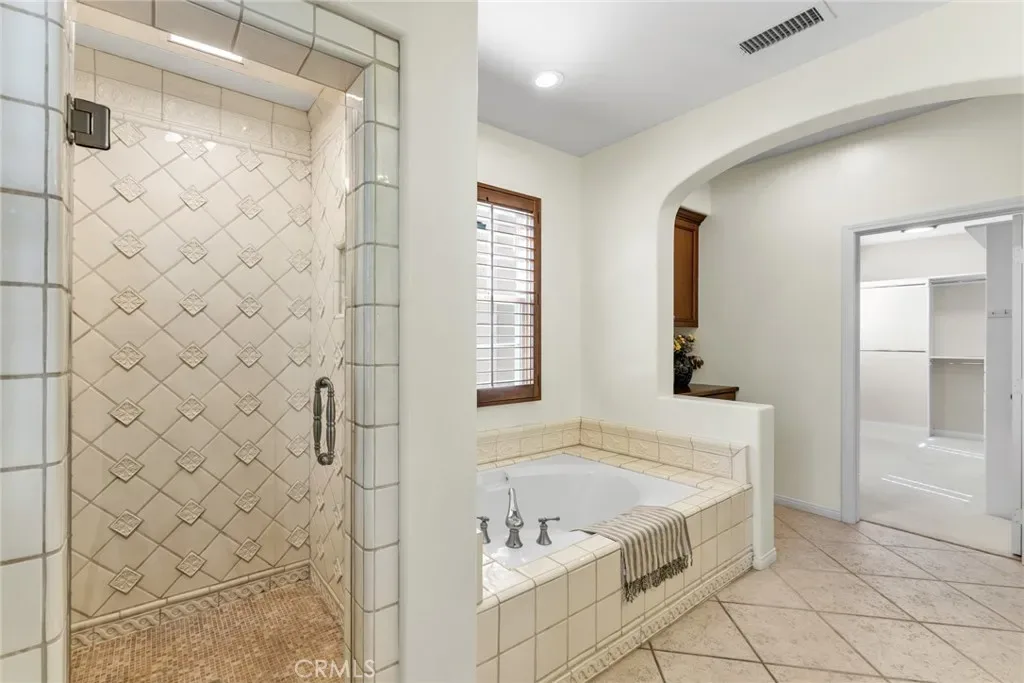 The master suite includes a private retreat and a luxurious bathroom with custom ceramic tile work on the shower and tub, plus a huge walk-in closet with built-in organizers. Two additional bedrooms share a beautifully remodeled bathroom. A highlights is the Casita over the garage with its own private rear staircase—currently used as an office but easily convertible into a 5th bedroom. The backyard offers a built-in fountain, creating a serene and private escape. All this is within walking distance to the community pool, clubhouse, park, and BBQ area.”