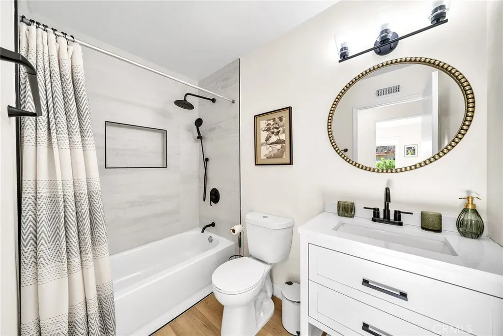 LOCATION! LOCATION! LOCATION! CORNER LOT! RARE SINGLE-STORY HOME ON A GENEROUS LOT WITH CITY-APPROVED PLANS FOR AN APPROX. 800 SQFT 2BR/2BA SINGLE-LEVEL ADU WITH ITS OWN SEPARATE ADDRESS (structure not yet built, buyer to verify and apply). JUST STEPS AWAY FROM WALNUT VILLAGE CENTER & HERITAGE PLAZA featuring Trader Joe’s, Daiso, Ralphs, Tokyo Center, restaurants, cafés, and boutiques, offering exceptional everyday convenience!!! This FULLY RENOVATED home offers a refined blend of modern comfort, thoughtful design, and exceptional indoor-outdoor living. The inviting front porch leads to an impressive living room with VAULTED CEILING, RECESSED LIGHTING, a striking accent wall with a cozy fireplace, creating a warm and stylish focal point. Enjoy the newer wood floors that flow seamlessly throughout the home, large windows to fill every room with natural light. The chef’s kitchen features a large CARRARA STYLE DOUBLE-WATERFALL ISLAND with built-in cabinets and bar seating, FULL BACKSPLASH, Premium High-end Kitchen Appliances, upgraded deep stainless sink, extensive modern white shaker cabinetry, self-closing doors and drawers, corner base Lazy Susan Cabinet with Revolving Shelves, elegant pendant lighting, and ample counter space for any occasion! The sliding glass door fills the kitchen with natural light while opening to an EXPANSIVE BACKYARD. The spacious lot provides excellent potential to enhance the home’s value and expand its possibilities in the future. The thoughtfully designed master suite offers recessed lighting and the convenience of DUAL CLOSETS, including a walk-in closet and an additional sliding-door closet, offering practical and flexible storage solutions. BOTH BATHROOMS HAVE BEEN RENOVATED to offer modern comforts with high-end finishes, fixtures & hardware. Situated in the highly acclaimed Irvine Unified School District and surrounded by quiet, well-established streets, this home offers both academic excellence and a welcoming community atmosphere. As a resident of The Colony, you’ll enjoy access to exclusive amenities, including a Olympic-size pool, tennis & basketball courts, and private clubhouse. LOW HOA & NO MELLO ROOS!