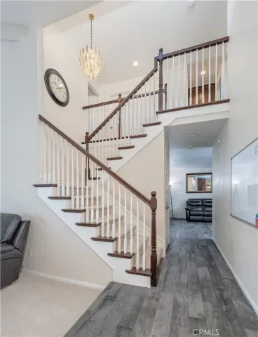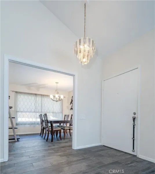 This impressive detached home offers a generous four-bedroom, two-and-a-half-bathroom layout, nestled serenely on a quiet cul-de-sac in the picturesque community of Woodbridge. The property features a spacious two-car garage, providing ample storage and parking options. Upon entering, you are greeted by soaring cathedral ceilings that create a sense of openness and light. The main floor includes a large den, perfect for a home office or playroom, enhancing the living space. The separate living room invites you to unwind by the cozy fireplace, making it an ideal spot for relaxation on cooler evenings. The heart of the home, the kitchen, boasts granite countertops, stainless steel appliances, and plenty of cabinetry for all your culinary needs. Venture upstairs to discover the spacious primary bedroom, a true retreat with its upgraded ensuite bathroom featuring dual sinks, allowing for easy morning routines. The three additional bedrooms provide versatile options for family, guests, or hobby spaces, ensuring everyone has a comfortable area of their own. A convenient laundry room adds functionality to the home, making chores a breeze. Step outside to your private backyard, perfect for outdoor gatherings, gardening, or simply enjoying the fresh air. Plus, this fantastic location offers the convenience of being within walking distance to an Olympic-sized pool and tennis courts, as well as highly-rated schools. North Woodbridge Lake and a beautiful park are just a short drive away, providing opportunities for outdoor recreation. With low HOA fees and no Mello Roos, this property is an exceptional find that combines comfort, style, and location.