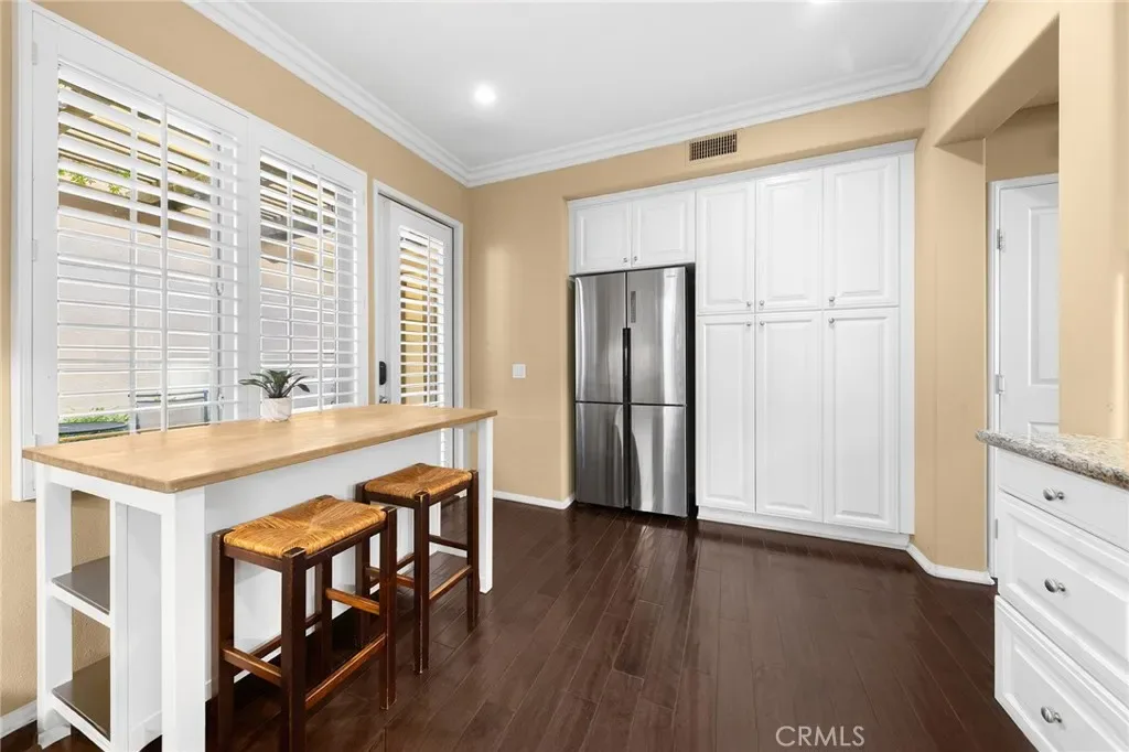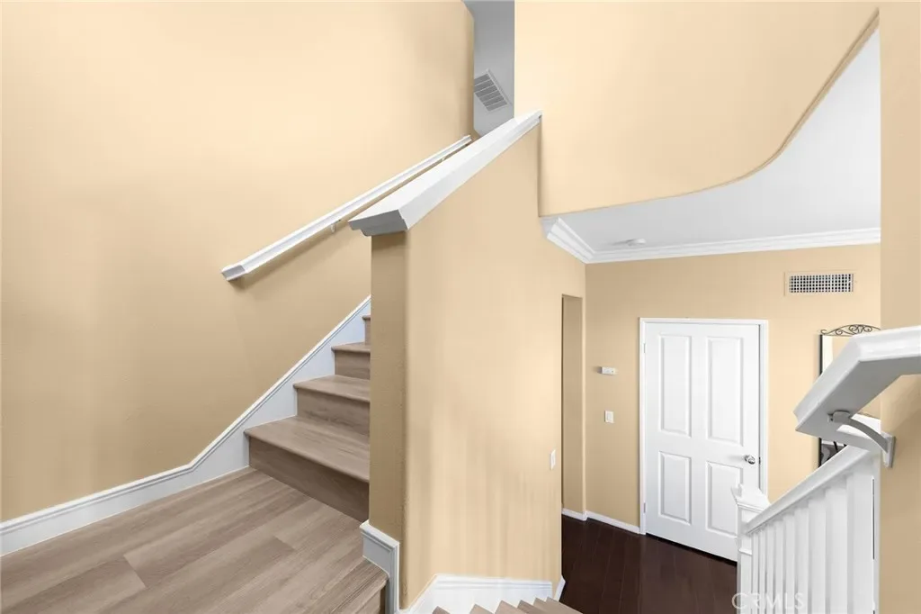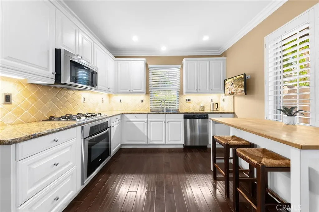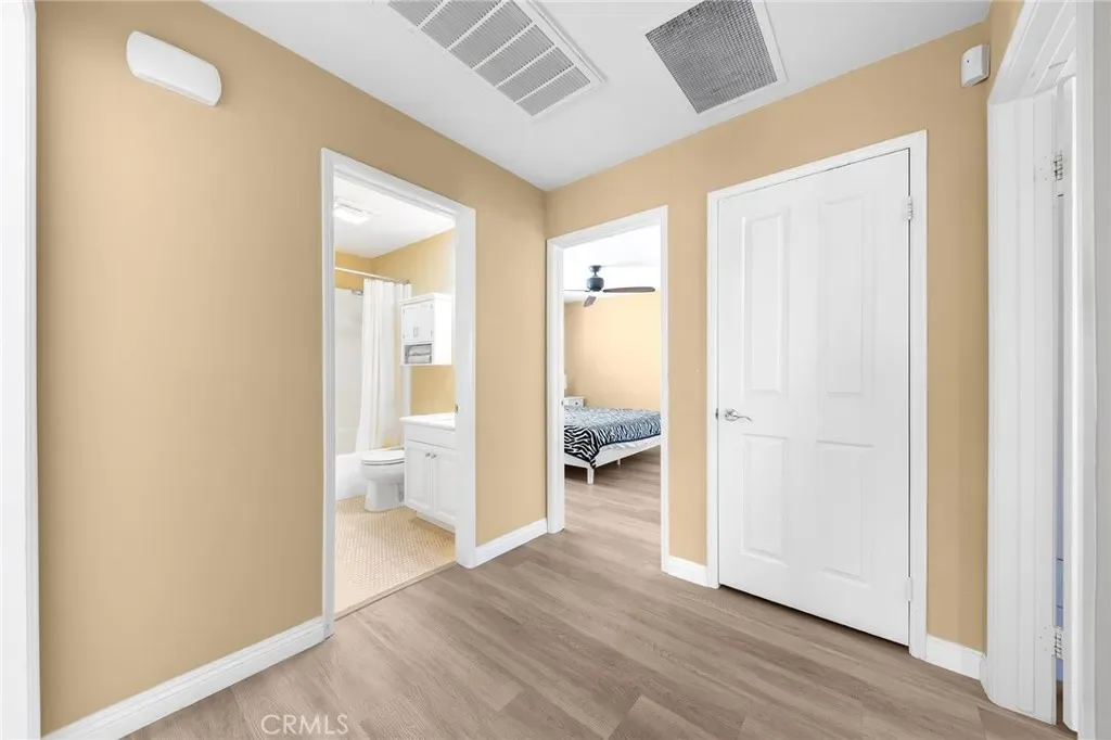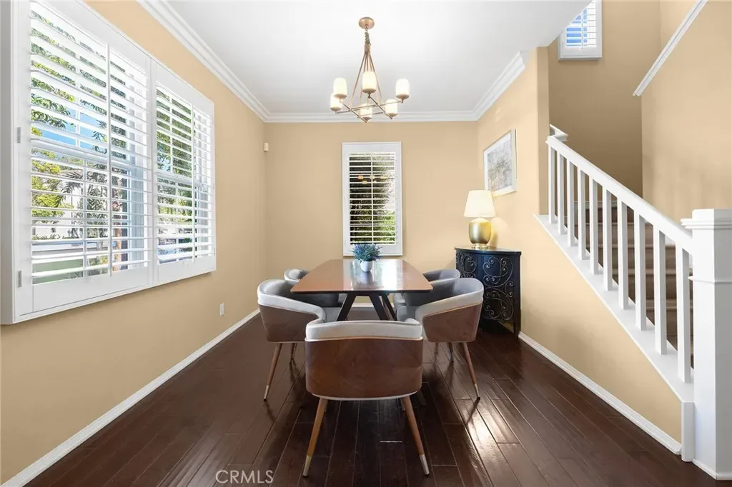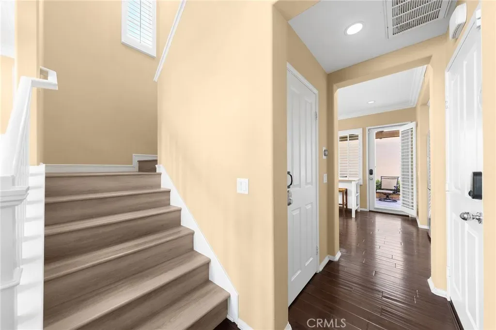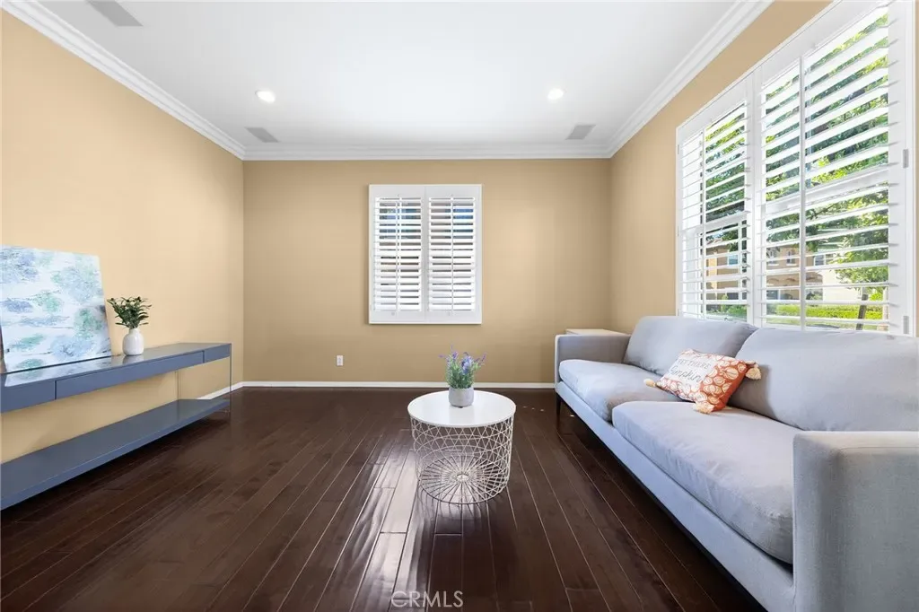 Welcome to this exceptional 4-bedroom, 3-bath residence offering comfort, functionality, and outstanding value. The flexible floor plan includes a first-floor living room that may be used as a fourth bedroom with a full bath, fully permitted for peace of mind. Upon entry, the home features a bright living room on the right and a formal dining room on the left, creating a welcoming flow for gatherings and everyday living. Beyond the dining room lies the kitchen, which opens to a private backyard patio—an inviting retreat ideal for outdoor dining or quiet relaxation. Wood flooring runs throughout the home, adding warmth and continuity. Upstairs, you’ll find three spacious bedrooms, thoughtfully designed to meet diverse needs. The primary suite offers a generous walk-in closet and an en-suite bath, creating a serene private space. Two additional bedrooms complete the second level, perfect for family, guests, or office use. The location is highly desirable, with convenient proximity to Woodbury Town Center for shopping and dining, as well as the Great Park Sports Complex for recreation and community activities. With its versatile layout, modern finishes, and prime setting, this home presents an opportunity not to be missed.