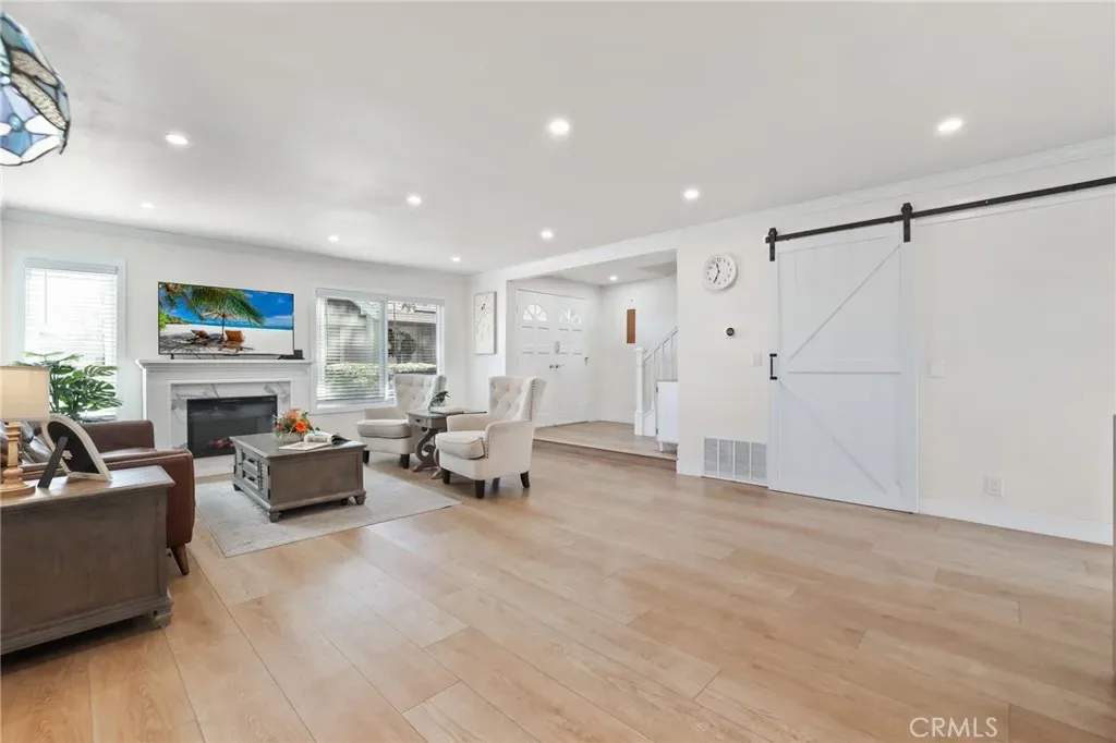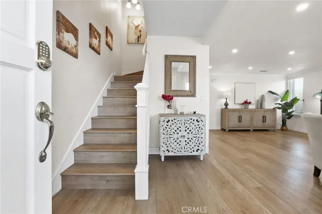 Enter through the front door to find abundant natural light streaming through large dual-pane windows, complemented by 30 recessed lights throughout the home. Luxury vinyl flooring and designer paint colors create a cohesive, polished look in every room.
