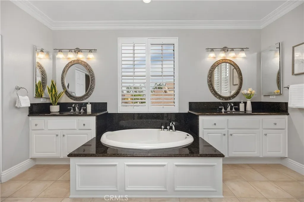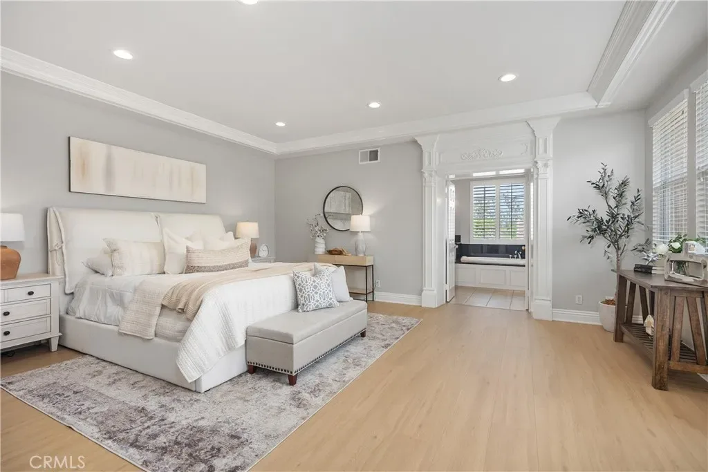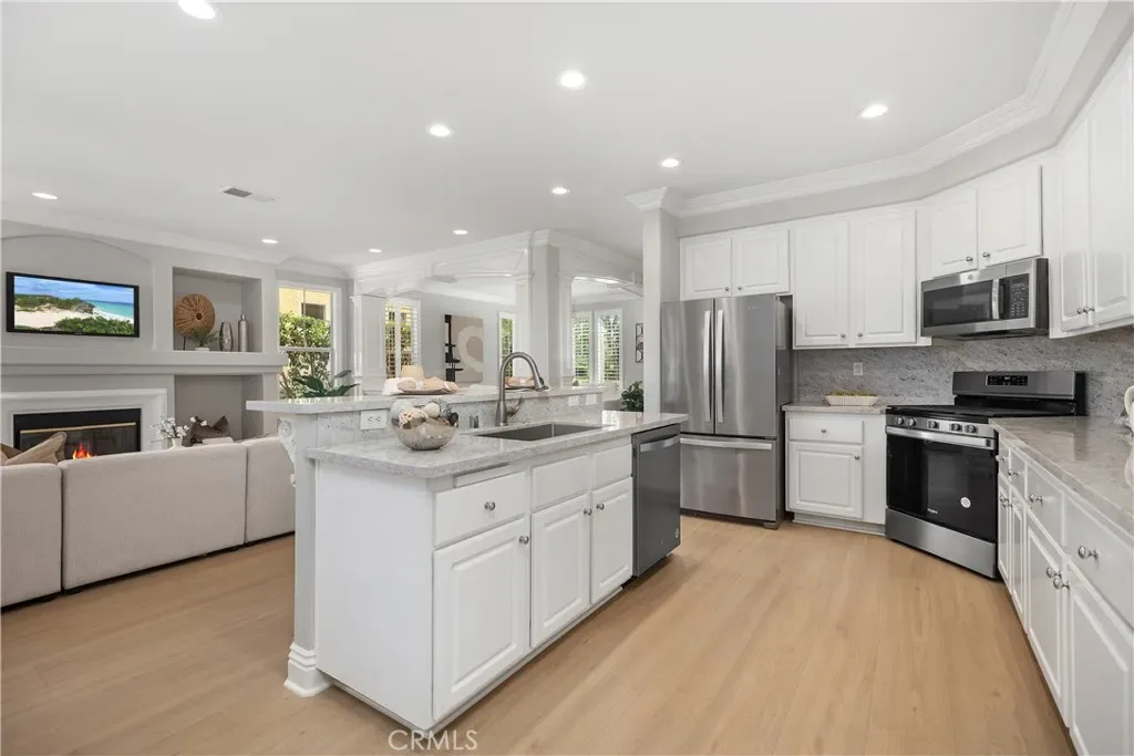Step into this stunning Northpark residence, where elegance meets comfort. Boasting 4 spacious bedrooms and 2.5 beautifully appointed bathrooms, this home features new laminate flooring and crown molding throughout, creating a seamless and polished look. The gourmet kitchen is a chef’s dream, featuring pristine white cabinetry, luxurious quartz countertops, a walk-in pantry, and designer recessed lighting, flowing effortlessly into the inviting family room with a warm fireplace. The home also offers a separate living room, while the dining room opens to the backyard, which showcases Graystone flooring perfect for entertaining. Custom window shutters enhance the home’s refined appeal throughout. The primary suite is a private retreat, complete with double doors, a serene balcony, a spacious walk-in closet with built-ins, and a spa-inspired bath with a walk-in shower, separate soaking tub, and dual sinks. Three secondary bedrooms share a well-designed hall bathroom with dual sinks and a shower-over-tub. Two bedrooms feature walk-in closets with built-ins, and one is currently set up as a stylish home office with double doors. Enjoy access to a wealth of amenities, including 5 swimming pools, 6 parks, 3 tot lots, a clubhouse, a full basketball court, 2 half courts, and 3 tennis courts. It is also just a 5-minute walk from Hicks Canyon Elementary School. This home is designed for both comfort and elegance, making it the perfect place for you and your family. Additional features include a direct 2-car garage, a convenient first-floor laundry room, and abundant storage throughout. This home offers a perfect blend of elegance, functionality, and timeless design an exceptional opportunity to live in the highly sought-after Northpark community.