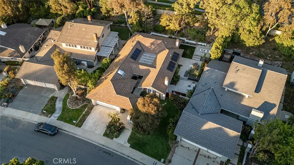 Located in Prestigious Turtle Rock, this is the Single Level, Entertainer’s Dream Home you have been waiting for!!! With a generous 10,857 square foot lot, this popular Glenneyre model offers 4 bedrooms, 2 bathrooms, and appx 2,367 square feet. Step through the double door entry into a foyer overlooking an enclosed central atrium with lovely plants, flowers and patio cover creating a peaceful indoor-outdoor connection. Hardwood floors, fresh paint and French doors throughout the home enhance its bright, inviting atmosphere. The elegant living room showcases soaring ceilings, custom lighting and an elegant fireplace, seamlessly connecting to the formal dining room for effortless gatherings. The Chef’s Gourmet kitchen is both stylish and functional showcasing Bosch stainless steel appliances, Silestone countertops, custom cabinetry, glass backsplash, and an informal dining area perfect for everyday living and entertaining. The open-concept family room features designer inspired built-in shelves and wine bar, a cozy fireplace and French doors that open to an Architecturally designed landscaped backyard. Step outside to this stunning, landscape architect–designed hillside backyard featuring sculptures, fruit trees, multiple patio areas, lush landscaping and a built-in entertainment space with barbecue, ideal for hosting or relaxing. The private primary bedroom suite includes a remodeled spa-like bath with soaking tub, dual vanities, skylight, glass-enclosed shower and mirrored wardrobe closet doors. The large secondary bedrooms are conveniently located near the indoor laundry. Additional highlights include ample garage storage with a pull-down ladder for attic access, a new water heater and Seller owned Solar Panels. Low HOA of $152/month provides access to a pool, spa, tennis courts, playground, and park. Enjoy Low Taxes and No Mello Roos. Ideally located near beaches, shopping, restaurants, major freeways, and within walking distance to award-winning University High School and Turtle Rock Elementary, this home offers the best of Southern California living.