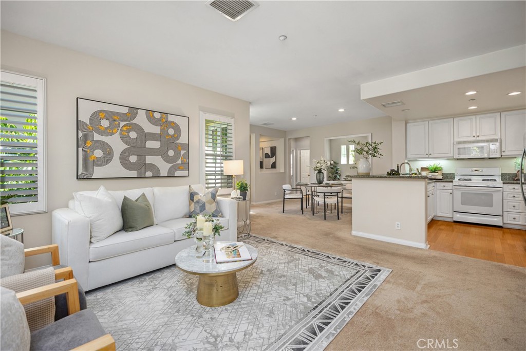 Experience refined living in the highly sought-after community of Quail Hill, where comfort, convenience, and an exceptional lifestyle come together in this beautifully upgraded 2-bedroom, 2-bath residence. Perfectly situated in one of Southern California’s most desirable locations, Quail Hill offers unmatched connectivity—just moments from the 5, 405, and 133 freeways, approximately 7 miles to the beaches of Laguna Beach, and only 8 miles to John Wayne Airport. The community is also part of the nationally acclaimed University High School district and is surrounded by protected open space, offering miles of scenic hiking and biking trails for those who enjoy an active, outdoor lifestyle. Set within a charming, garden-inspired enclave, the home welcomes you with tranquil pathways, lush landscaping, and a peaceful courtyard setting. Inside, light-filled living spaces feature an open-concept design with soaring ceilings, soft neutral tones, and a cozy fireplace—creating an inviting atmosphere for both everyday living and entertaining. The thoughtfully designed kitchen showcases granite countertops, crisp white cabinetry, and generous workspace, seamlessly connecting to the dining and living areas. Upstairs, two spacious bedrooms provide comfort and privacy, including a primary suite with abundant natural light and a well-appointed en-suite bath. Additional highlights include plantation shutters, recessed lighting, and a versatile floorplan suited for modern living. The location of 33 Flowerbud within Quail Hill is equally exceptional—nestled among beautifully tree-lined streets, just one block from award-winning Alderwood Elementary, a half block to Commons Park, the resort-style pool, and fitness center, and only a few blocks to the Quail Hill Shopping Center with dining, coffee, and everyday conveniences. A rare opportunity to enjoy elevated living in one of Irvine’s most ideally located and healthy lifestyle communities.