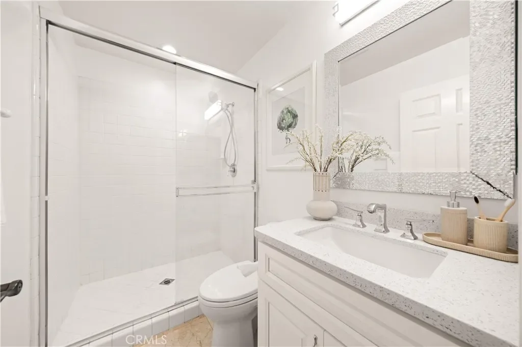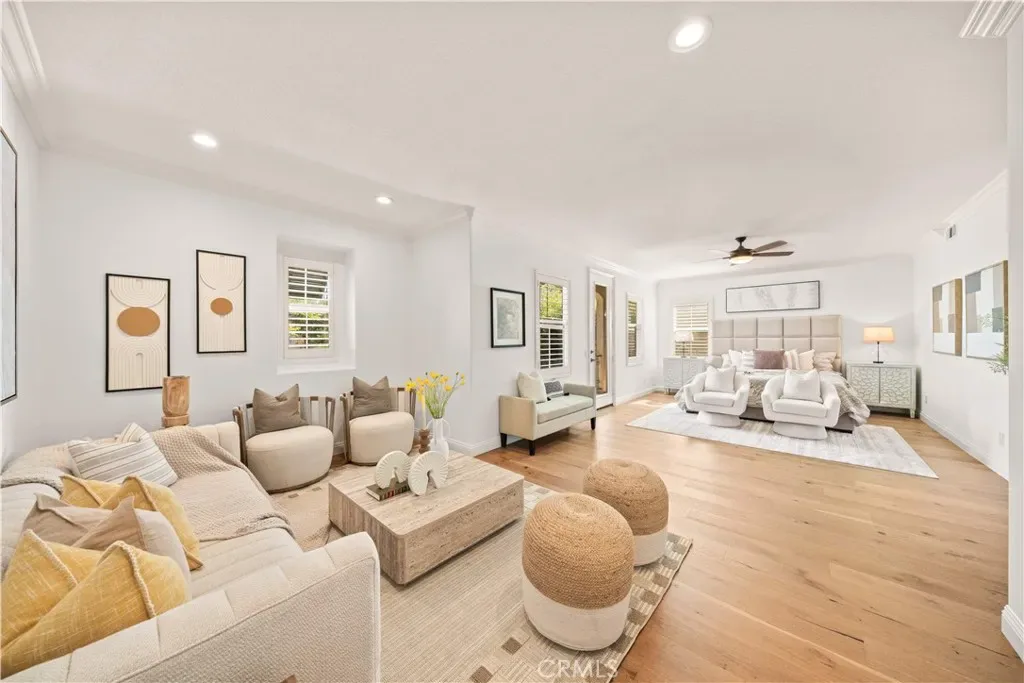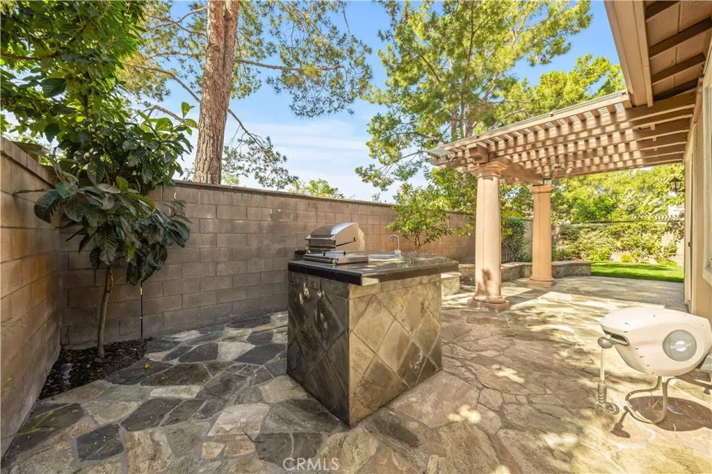 Nestled within the prestigious Northpark Square community of Irvine, this detached single-family home is ideally positioned on a rare single-loaded lot with no neighbors directly behind, offering exceptional privacy and a peaceful setting backing directly to Bella Vista Park. The home features a bright and functional layout with an open living and dining area upon entry, flowing seamlessly into the spacious kitchen with a center island that connects to the family room, creating an ideal space for both everyday living and entertaining. The kitchen also includes recently replaced window glass. A main-level bedroom with a full bathroom provides flexibility for guests or multi-generational living. Upstairs offers a versatile study area, a generously sized primary suite with built-in cabinet storage, and two secondary bedrooms connected by a Jack and Jill bathroom. The home has been thoughtfully upgraded over the years, beginning with recent fresh interior paint. Hardwood flooring and tile run throughout, along with LED recessed lighting, a water filtration system, and an installed solar system. All bathrooms have been remodeled with updated cabinetry, quartz countertops, Hansgrohe fixtures, and smart toilet installations, and the primary suite features an upgraded shower. The epoxy-coated garage, along with extended storage space, adds additional functionality, while both the front and backyard have been refreshed with updated landscaping. The backyard features a built-in barbecue area and fruit trees, adding to the overall outdoor living. Residents enjoy access to resort-style community amenities including pools, spa, playgrounds, gazebo areas, lush greenbelts, and walking trails, all within a quiet and well-maintained neighborhood. Just across the street is a neighborhood plaza with H Mart and a variety of dining options, making everyday errands and dining out easy. The home is also within the award-winning Tustin Unified School District, including Arnold O. Beckman High School, and offers convenient access to the 5 freeway. Low HOA dues make this home even more attractive.