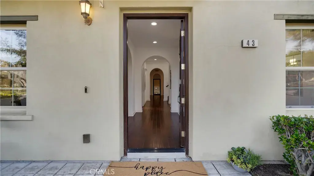 Welcome to 43 Conservancy, a refined and inviting residence that blends modern Spanish architecture with timeless elegance and everyday comfort. Filled with natural light and thoughtfully designed throughout, this detached home offers warmth, charm, and understated luxury from the moment you arrive. The main level unfolds with intention, beginning with a gracious living room and formal dining space ideal for hosting and entertaining. A private courtyard tucked just off the hall creates a serene indoor-outdoor retreat—perfect for a quiet pause or morning reflection. Toward the rear of the home, the refreshed kitchen and cozy family room, anchored by a fireplace, invite relaxed evenings and meaningful gatherings. The kitchen has been tastefully updated with white shaker cabinetry and quartz countertops, and is equipped with premium appliances including a Bertazzoni cooktop with high-BTU brass burners and Samsung WiFi-enabled stainless steel appliances. A French door opens to a quiet, private backyard designed for effortless outdoor living, while a salt-free water softener adds everyday comfort. Thoughtful modern upgrades enhance the home, including Google Nest smart lock, video doorbell, thermostats, floodlight cameras, and smoke alarms, along with touchless Legrand Adorne Wave switches, upgraded LED recessed lighting, Toto toilets, and Delta faucets. Energy efficiency is elevated with 24 high-production Qcells solar panels, plus a 220V EV-ready outlet in the garage.