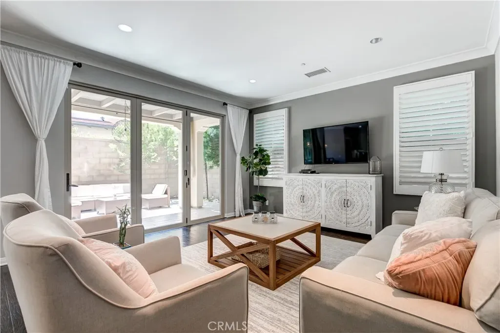 DETACHED, FULLY FURNISHED LUXURY HOME in Irvine’s desirable Cypress Village. Nestled on a private lot, this highly sought-after open-concept floor plan offers 3 bedrooms, 2.5 bathrooms, approximately 2,100 square feet of elegant living space, and an attached 2-car garage. Thoughtfully upgraded throughout, this home features rich wood flooring on the main level, crisp white cabinetry, designer lighting, custom countertops, and bi-fold doors that open to a covered patio—perfect for seamless indoor-outdoor living. The chef-inspired kitchen comes fully equipped with top-of-the-line KitchenAid stainless steel appliances, including a refrigerator, dishwasher, microwave, and washer/dryer. Marble countertops, a stylish backsplash, a large center island, and fully stocked cookware and dishware complete this entertainer’s dream kitchen. Upstairs, a versatile tech loft offers a quiet space for work or study. The grand primary suite features a spacious walk-in closet and a luxurious en-suite bathroom with dual vanities, marble countertops, frameless shower glass, and custom tilework. The generously sized secondary bedrooms include walk-in closets for ample storage. Step outside to enjoy the professionally landscaped backyard—designed for low-maintenance relaxation. Just moments from Cypress Village Shopping Center, 99 Ranch Market, Woodbury Town Center, Irvine Spectrum, The Great Park, and the scenic Jeffrey Open Space Trail—a nearly 5-mile paved path ideal for walking, jogging, and cycling through beautifully landscaped parkland. Residents enjoy world-class amenities including multiple resort-style pools, parks, sports courts, community centers, and access to award-winning Irvine Unified Schools.