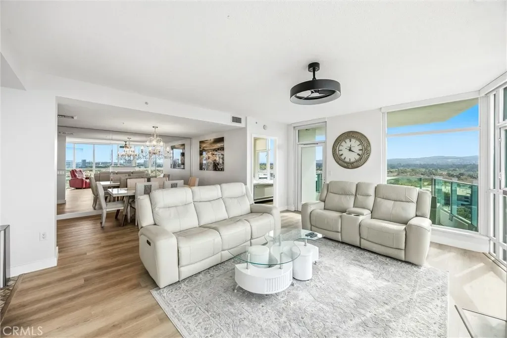 Commanding the 15th floor of Marquee at Park Place, this rare corner residence is wrapped in walls of glass that capture sweeping city, mountain, and Catalina Island views while flooding the home with natural light. Wake up above the skyline with panoramic vistas stretching from the city lights of Irvine to the mountains and Catalina Island in the distance, with two dramatic walls of floor-to-ceiling glass filling the home with exceptional light by day and dazzling city lights by night. Available for lease annually, with shorter-term arrangements negotiable, the residence may be offered fully furnished or unfurnished, providing flexibility for those seeking a turnkey luxury experience or the opportunity to bring their own furnishings and personal style. The spacious Model E floor plan offers approximately 2,063 square feet of thoughtfully designed living space with two large bedrooms, two-and-one-half bathrooms, and a versatile den ideal for a home office, media room, or potential third bedroom. The open-concept great room flows seamlessly to a private outdoor patio, creating the perfect setting for entertaining while enjoying Irvine’s skyline and coastal breezes. The primary suite serves as a tranquil retreat with stunning day-and-night views, a private balcony, and a generous walk-in closet. The kitchen is beautifully appointed with quartz countertops, a built-in stainless steel refrigerator, and premium stainless steel appliances, opening naturally to the living and dining areas for effortless entertaining. Living at Marquee at Park Place offers a true resort-style lifestyle, with HOA services included in the lease covering water, gas, trash, and high-speed internet. Residents enjoy 24-hour concierge and guard-gated security, a state-of-the-art fitness center, heated pool and spa, private theater, billiards lounge, business center, barbecue areas, and beautifully landscaped gathering spaces. The residence also includes two side-by-side secured parking spaces and a private storage unit, all ideally located in the heart of Irvine’s business district with convenient access to UCI, John Wayne Airport, Newport Beach, South Coast Plaza, Fashion Island, and the 405 freeway, placing some of Orange County’s best dining, shopping, and entertainment just moments from your front door.