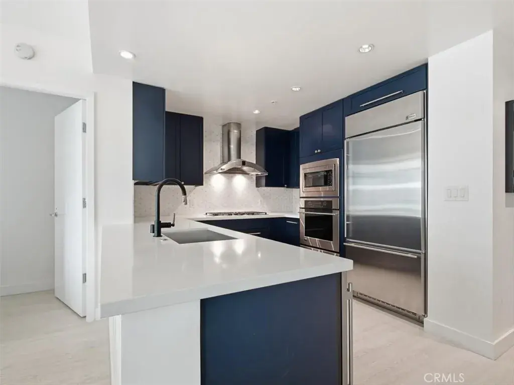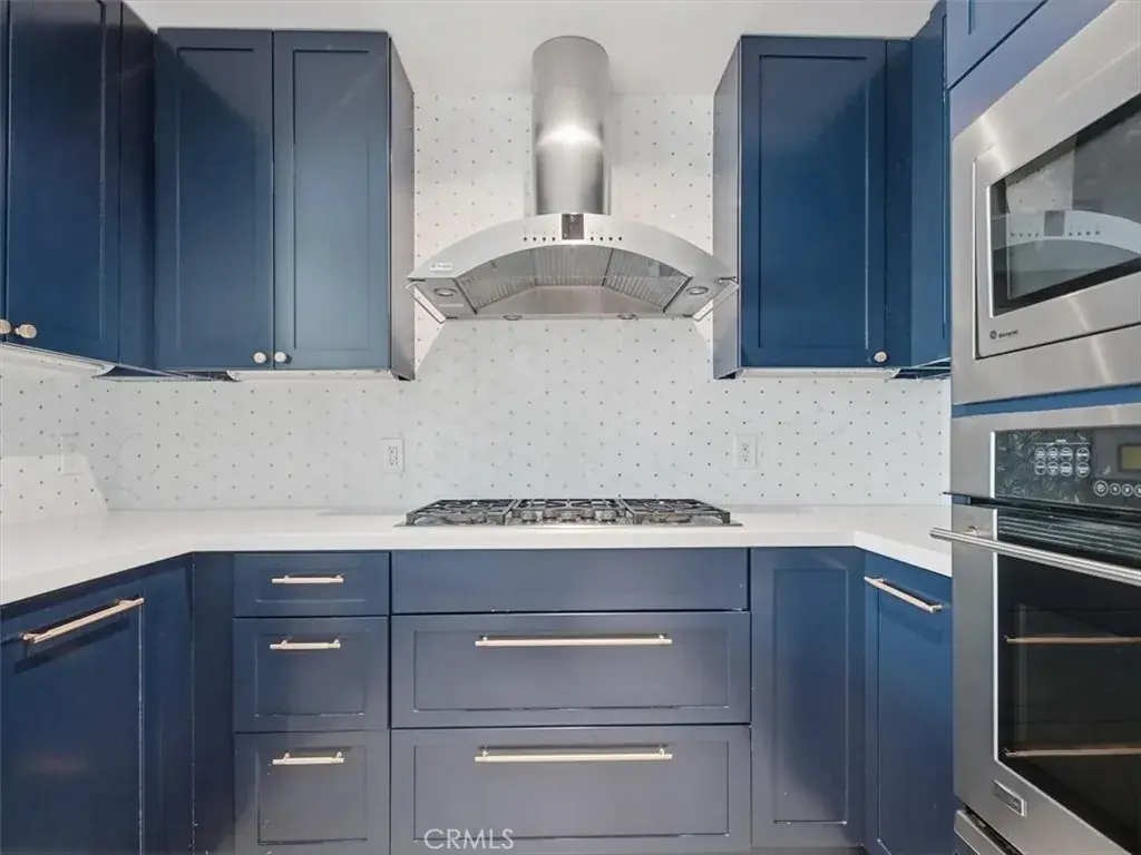 Courtesy of E Realty. Disclaimer: All data relating to real estate for sale on this page comes from the Broker Reciprocity (BR) of the California Regional Multiple Listing Service. Detailed information about real estate listings held by brokerage firms other than James Outland include the name of the listing broker. Neither the listing company nor James Outland shall be responsible for any typographical errors, misinformation, misprints and shall be held totally harmless. The Broker providing this data believes it to be correct, but advises interested parties to confirm any item before relying on it in a purchase decision. Copyright 2026. California Regional Multiple Listing Service. All rights reserved. The designer kitchen showcases deep-blue cabinetry, quartz counters, and a custom marble backsplash. The spacious floor plan features two large bedrooms plus a versatile den/office that easily converts to a third bedroom.